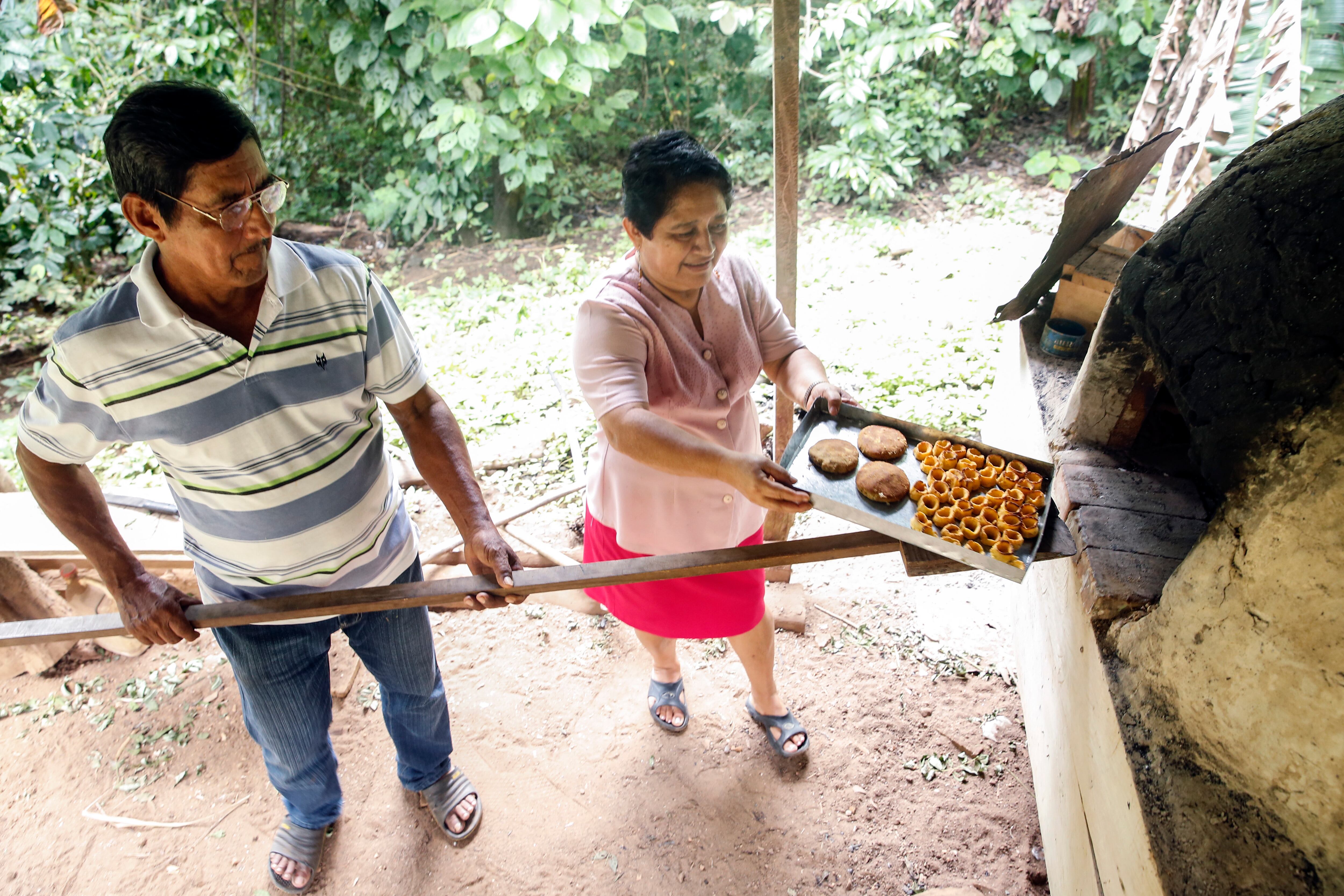 En su negocio recibe de los panes que prepara doña María Jesús para ponerlos a la venta, también rosquillas, arroz con leche y otras comidas que preparan mujeres de la comunidad para vender.