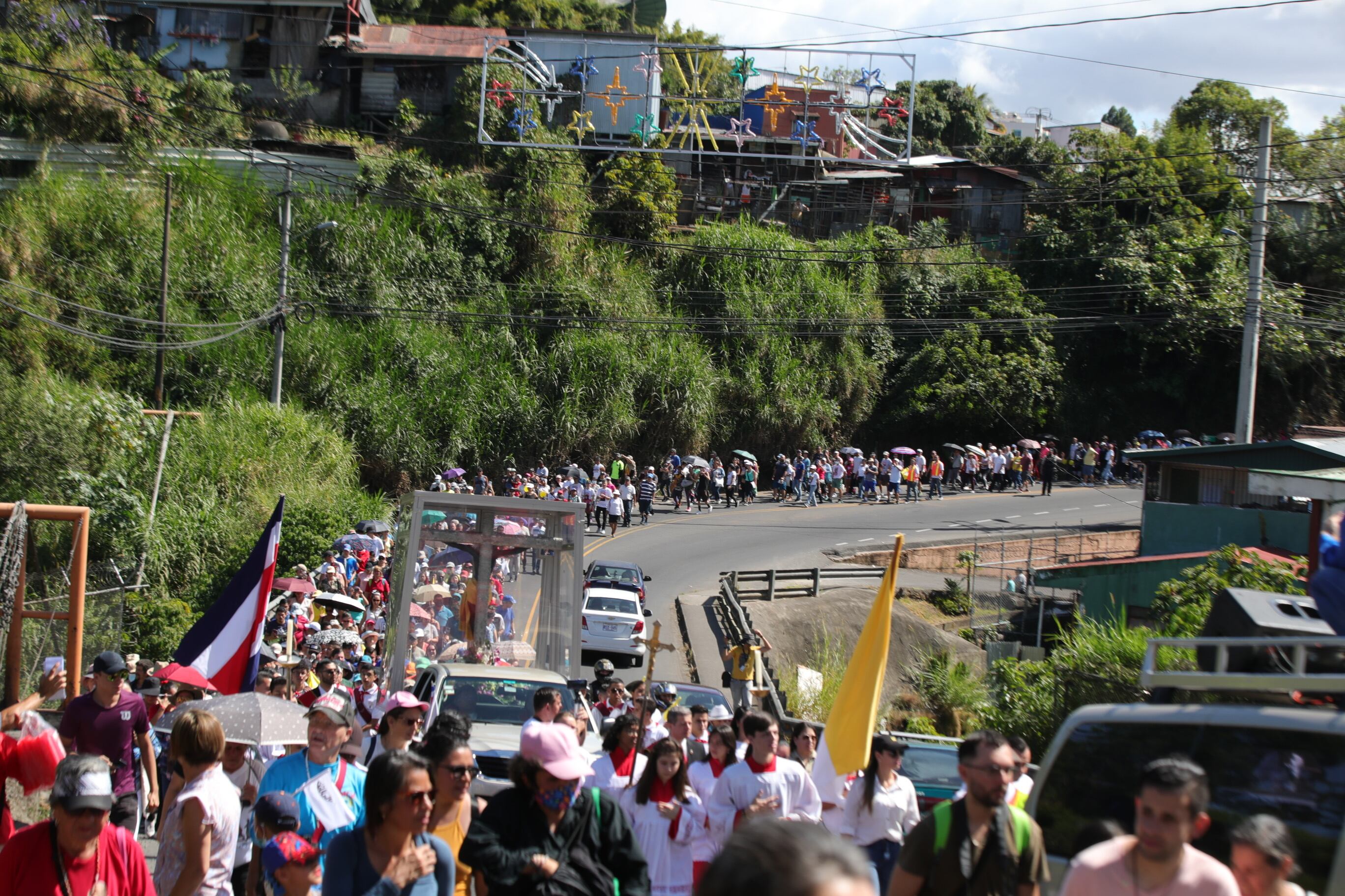 Luego de dos años en los que el recorrido únicamente se realizó en caravana, los devotos volvieron a caminar al lado del Cristo que salió desde la Catedral Metropolitana en San José, hasta la iglesia de Alajuelita.