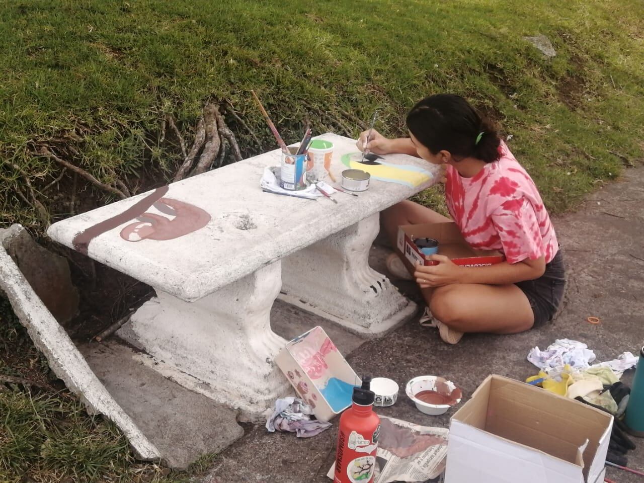 Tardó alrededor de seis horas en pintar su banca.