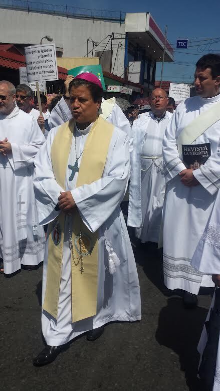 "Nosotros como Iglesia no nos cansaremos de seguir proclamando la buena noticia del matrimonio y de la familia, aunque haya proyectos de ley que pretendan callar nuestra voz, que pretendan decir cualquier palabra que discrimine, ideologizada, manipulada, para decirnos: no pueden seguir hablando; o que haya quienes también incluso ya han preguntado al presidente de la República (Luis Gmo. Solís) si nos va a decir algo por estar hablando de estos temas, si nos va a llamar la atención. Pero vamos a seguir proclamando la buena noticia de la vida, la buena noticia de la familia" indicó Quirós.