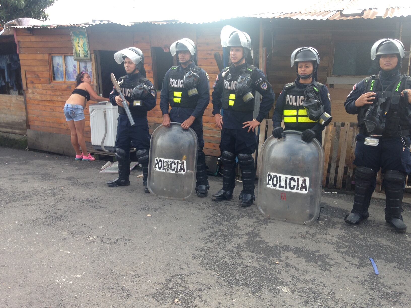 Mientras que cuadrillas de la Compañía Nacional de Fuerza y Luz (CNFL) y Acueductos y Alcantarillados (AyA) se encargaron de eliminar las conexiones ilegales de estos servicios públicos.