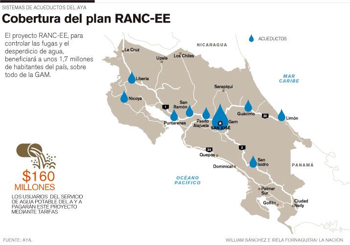 El proyecto. El AyA es responsable de 600.000 conexiones en el país y entre sus retos está mejorar la infraestructura física y operativa en sus sistemas, además de reducir el gasto en energía eléctrica. Según Núñez, RANC-EE le permitiría medir los caudales en sus sistemas, los niveles de los tanques y la presión de las redes, así como bajar la cantidad de fugas que se presentan.