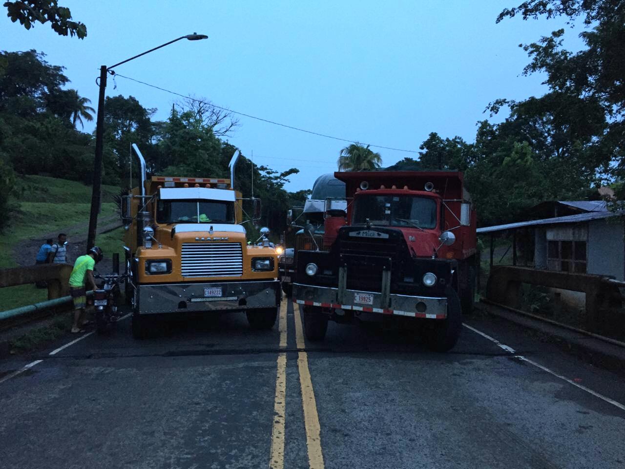 En Pérez Zeledón sigue el cierre sobre la carretera Interamericana Sur, en el puente sobre el río Jilguero. Este se ubica entre San Isidro de El General y Buenos Aires.