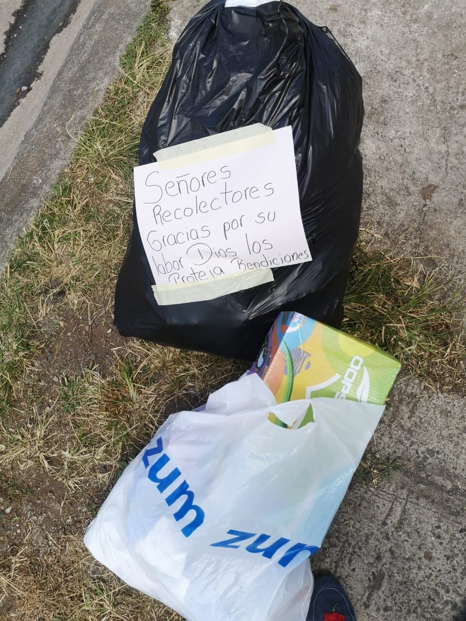 “Señores Recolectores, GRACIAS, Dios los cuide”. “Un aplauso para ustedes también”. “Cuídense, ya que ustedes no pueden estar en casa”. “Su trabajo es muy valioso para nosotros”.