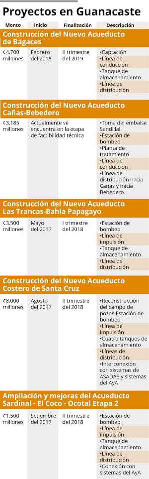 Los otros dos grandes proyectos incluyen las mejoras en el acueducto Sardinal-El Coco y la construcción de un nuevo acueducto en la zona costera de Santa Cruz.