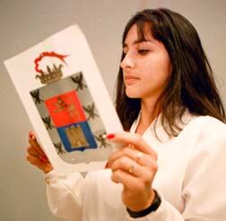 De aquel estudio, informó la secretaria municipal, Ligia Solano, emergió la reproducción más fidedigna, la cual por iniciativa del presidente del ayuntamiento, Leonel Campos, ahora --casi 431 años después-- se incorporó en el centro de la bandera, también colonial, de Cartago de colores rojo y azul.