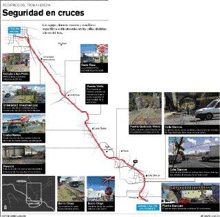A lo largo de los 12 kilómetros que componen esa línea ferroviaria hay al menos 10 cruces que carecen de una adecuada señalización para alertar a los choferes de autos, motos y carros pesados.