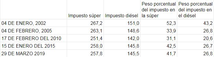 Lo que sí cambia es el peso del impuesto en el precio total de los combustibles, pues los hidrocarburos pueden ganar o perder terreno según el costo de la compra en el exterior. Por ejemplo, en el 2002 el impuesto equivalía a un 52% del precio de la gasolina súper y, hoy, representa un 42%.