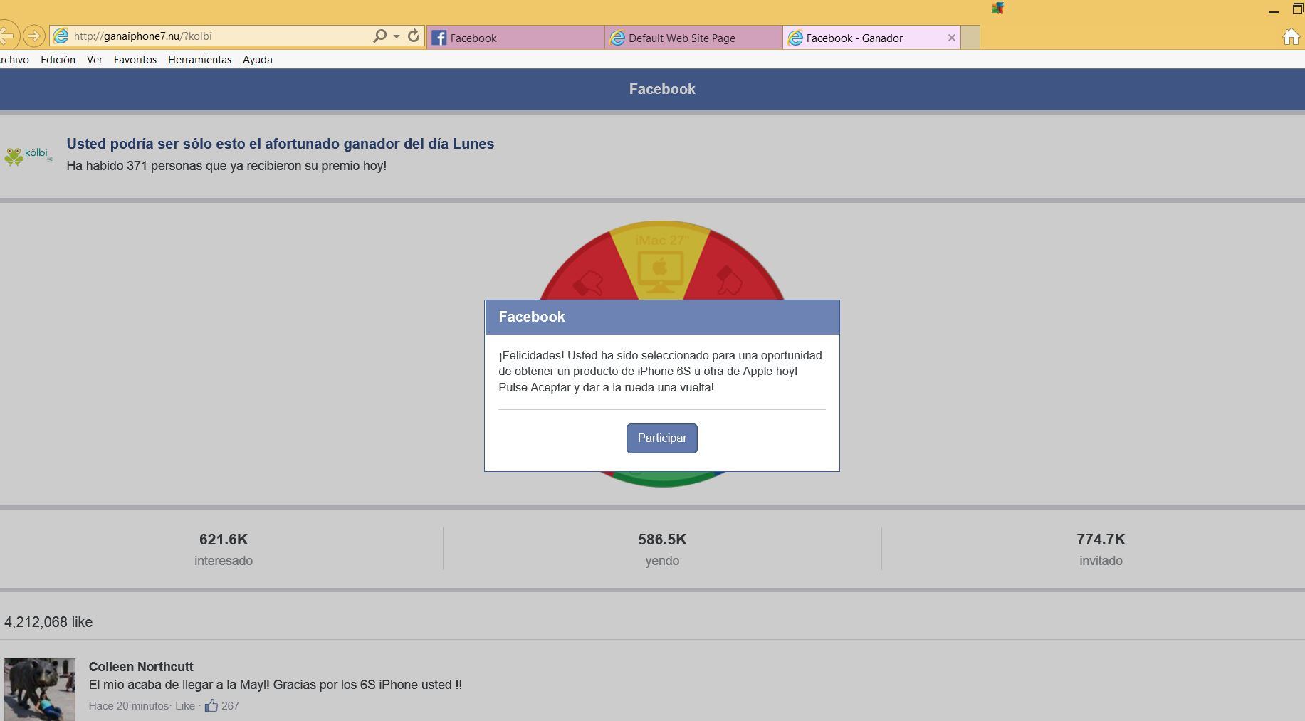 En esta página, localizada en un servidor en el extranjero, las personas interesadas en la falsa promoción debían suministrar datos personales para participar en el sorteo por los aparatos y luego jugaban con una animación en forma de una ruleta de colores.