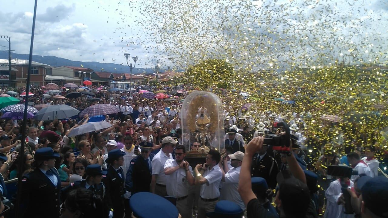 Los fieles acompañaron a la Negrita en este recorrido desde la 9 a. m. hasta la 1 p. m. de este domingo, pero la jornada se inició desde muchas horas antes en medio de aserrí, flores, brozas de café y harina multicolor, con diseños artísticos que son preparados con meses de anticipación.