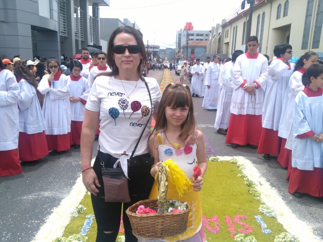 Magaly Díaz Cerdas, vecina de Guadalupe de Cartago, acompañó a su hija de siete años, Fiorella Flores Díaz, que iba vestida de jardinera por una promesa. “A mi mamá la operaron y casi fallece en ese momento, pero gracias a Dios y a la virgencita se logró salvar”, comentó.