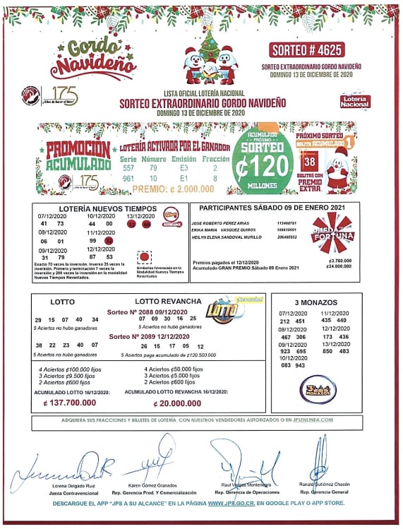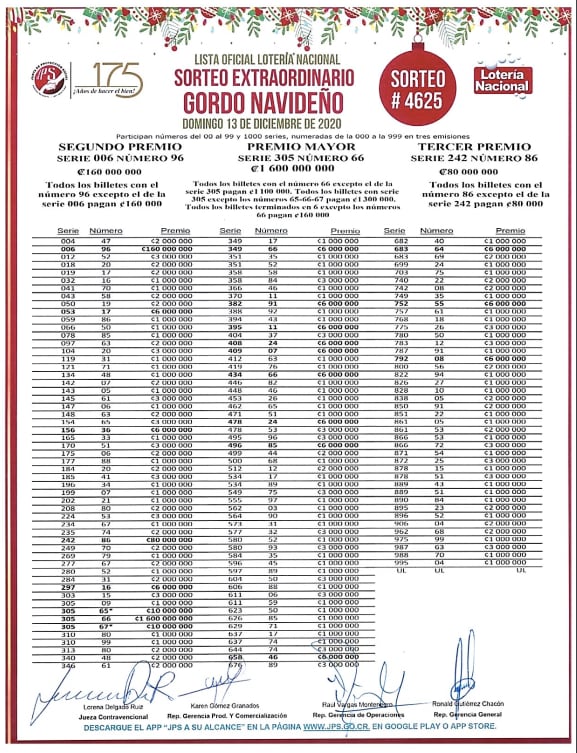 El segundo sorteo de consolación se jugará en emisión triple el domingo 27 de diciembre y paga ¢30 millones por fracción y 300 millones por cada billete del mayor.
