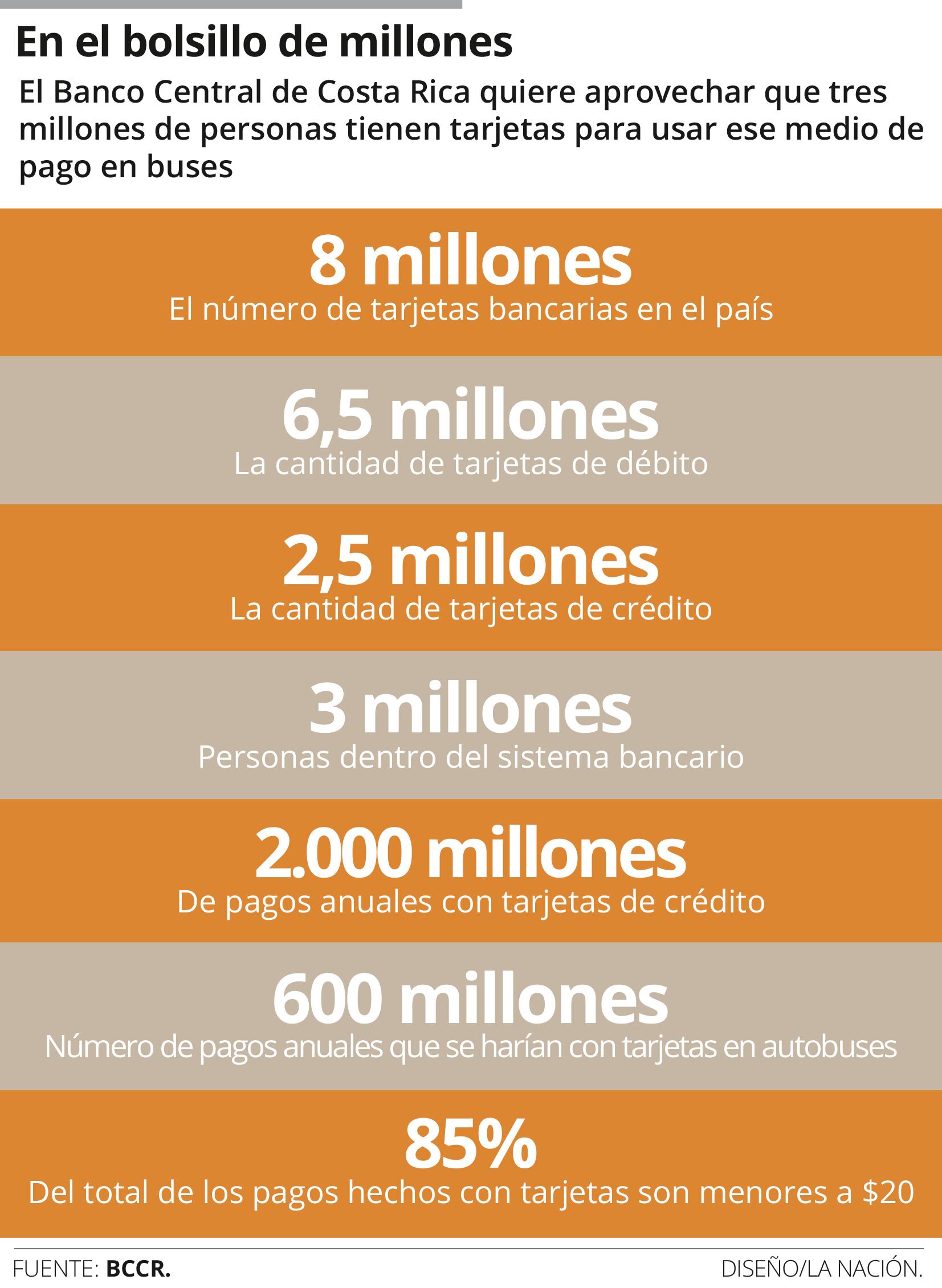 En julio, Carlos Melegatti, director de la División de Sistemas de Pago del BCCR, afirmó que esperan tener todos los detalles del sistema de cobro electrónico en buses para el segundo semestre del 2018, aunque el plazo original era en el segundo semestre del 2017.
