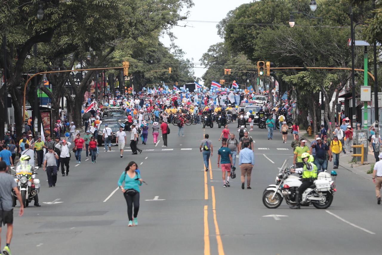 Las autoridades de Tránsito cerraron el paseo Colón ante la congregación de grupos de huelguistas que comenzarían a marchar a las 10 a. m. por la avenida segunda hacia la Asamblea Legislativa.