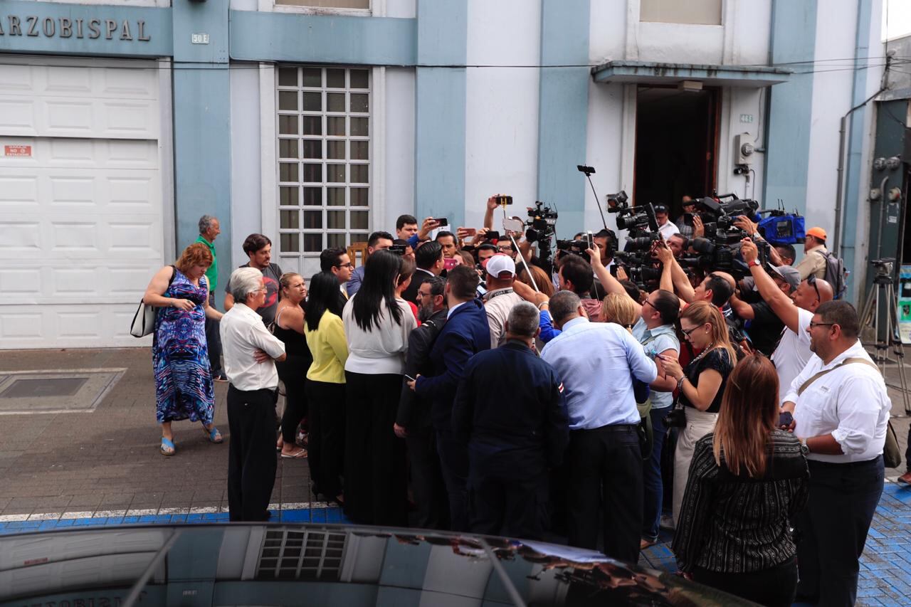 Casi tres horas después, la prensa se encuentra a la expectativa de lo que se ha tratado dentro de la Casa Arzobispal, ubicada al costado sur de la Catedral Metropolitana, en San José.