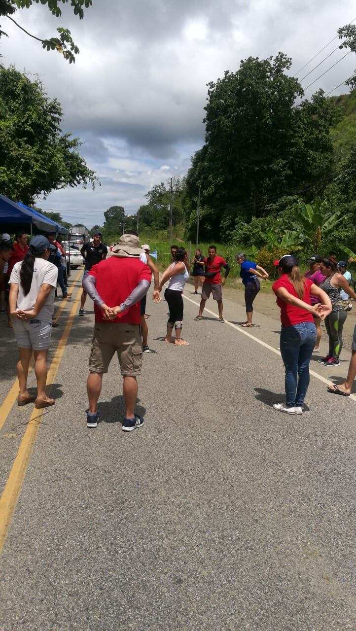 Los manifestantes que bloquean el paso desde las 8 a. m. en Tajo de Ciudad Cortés, en Osa, aprovecharon la mañana para hacer algunos estiramientos en la Costanera Sur.