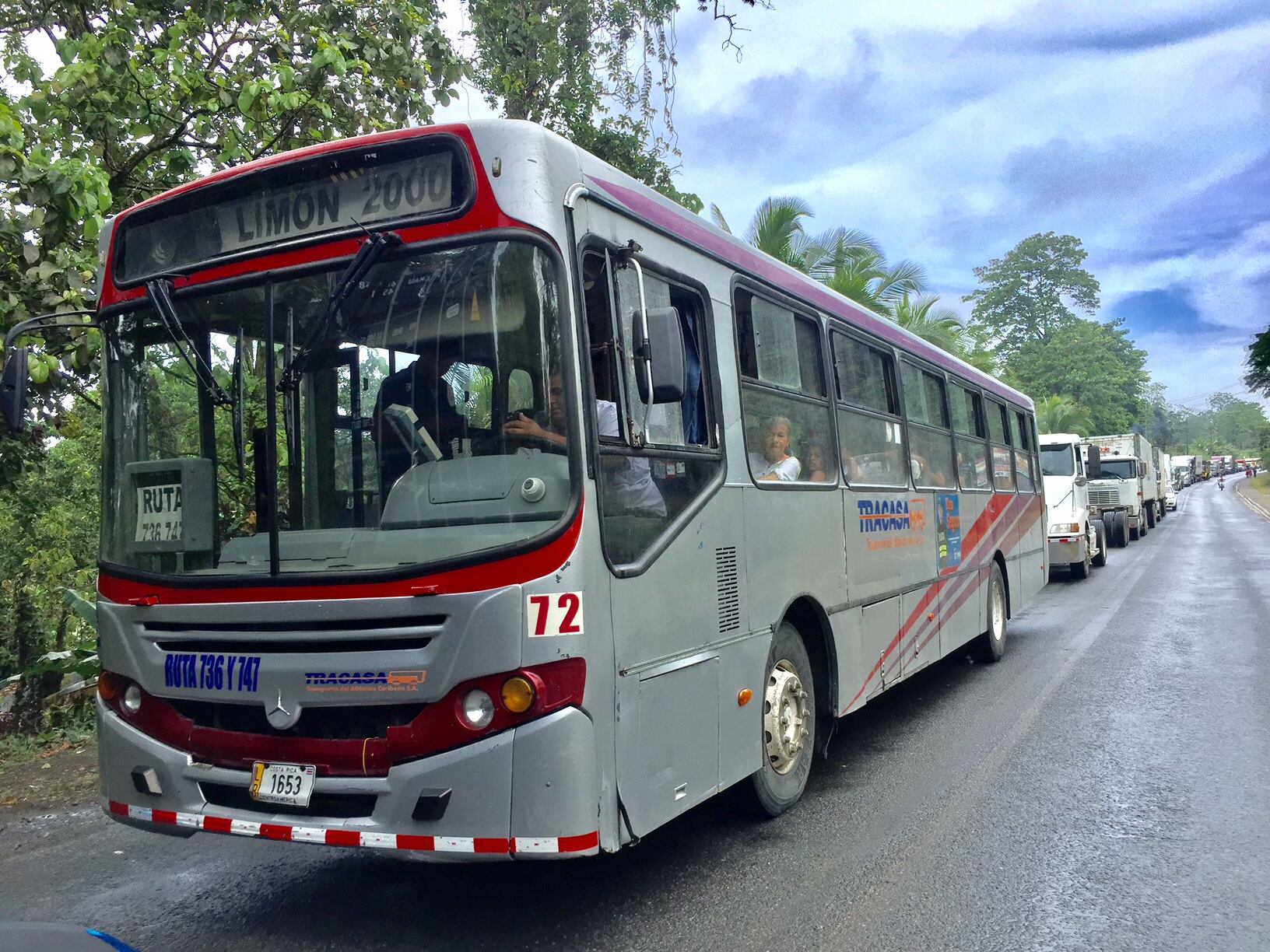 Huelguistas complican la circulación de buses y el paso de camiones pesados en Limón, principal puerto del país. El transporte público en esa ciudad se ha visto complicado por la huelga, incluso se suspende en las noches.