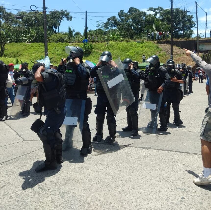 12:45 p. m. Se escuchan detonaciones en enfrentamiento de policías y manifestantes en muelle de Moín