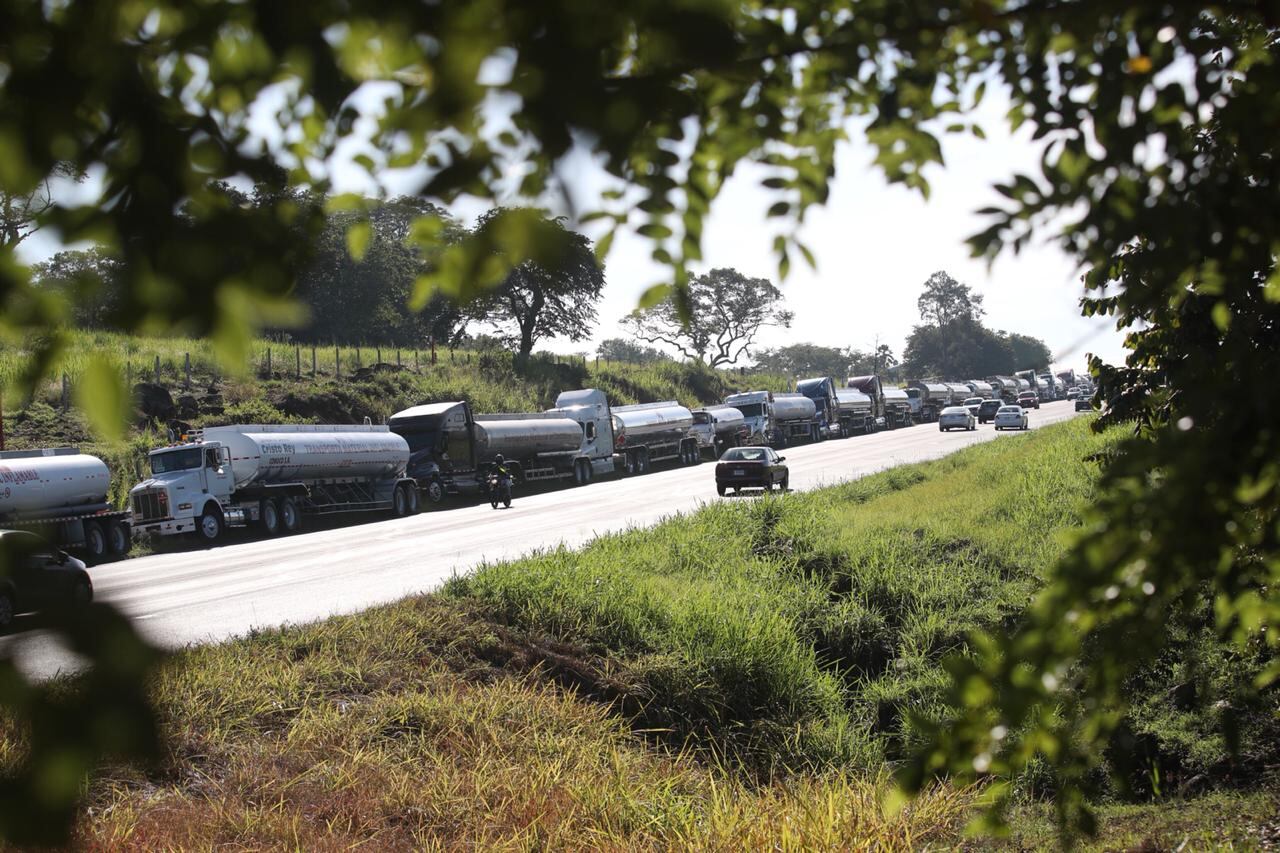 8:14 a. m. Camioneros esperan hasta 20 horas en La Garita para cargar combustible