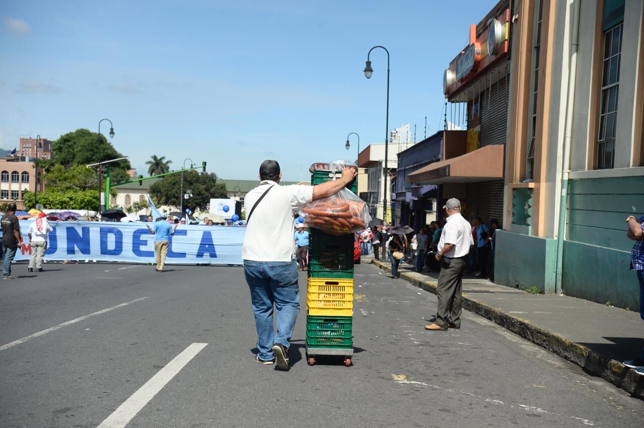 El bloqueo en la avenida segunda josefina para iniciar marcha hacia el Congreso, complica el ingreso de autobuses de las rutas de Alajuela, Sabana, Pavas entre muchas otras. Los pasajeros descienden y caminan.
