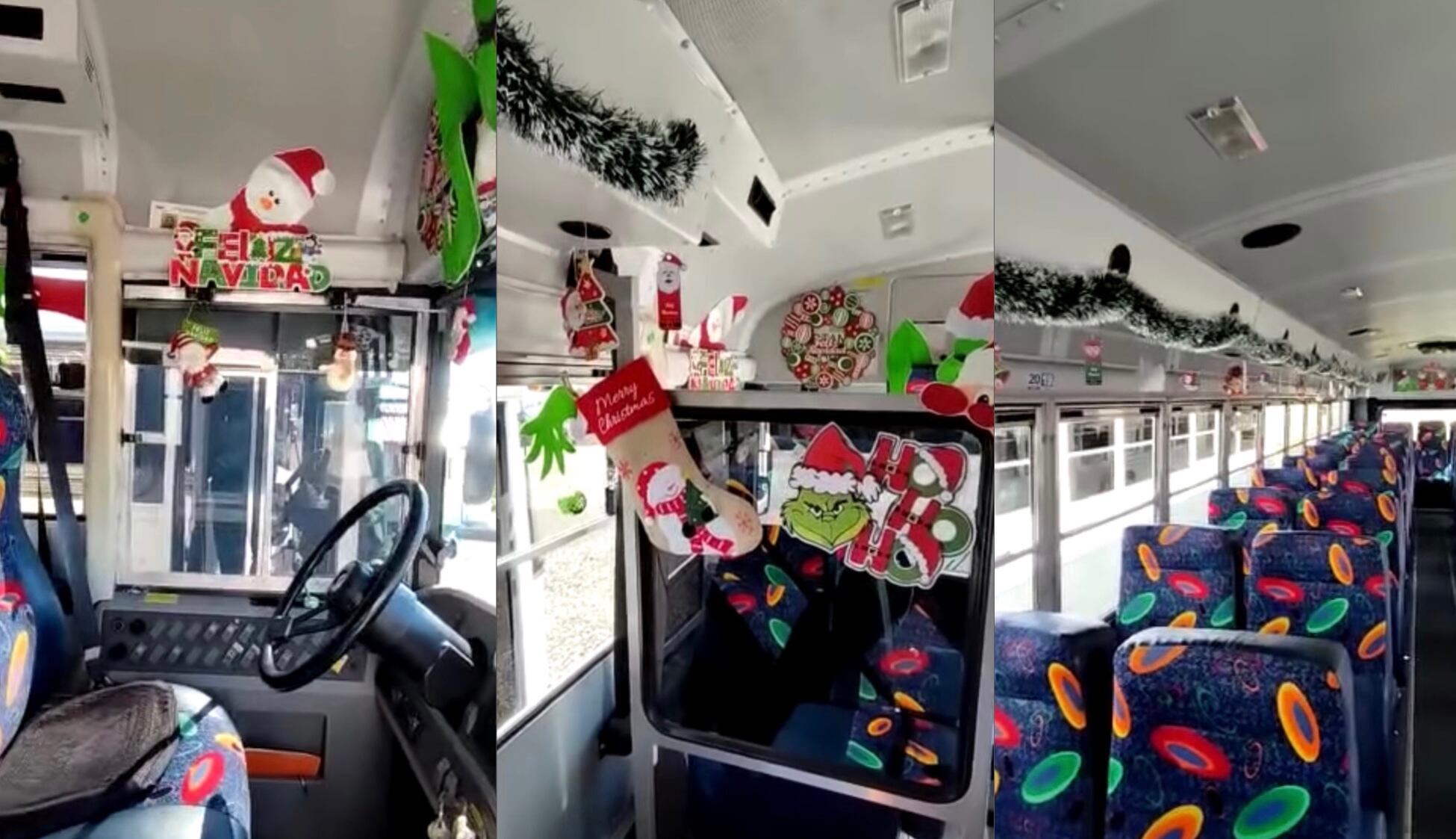 Con figuras de Santa Claus, “El Grinch”, guirnaldas y coronas navideñas, así decoró un chofer de Cartago el autobús que conduce. Las imágenes, compartidas por Comunicaciones Cartago, muestran el trabajo de Alex Villachica, un conductor con gran espíritu navideño.