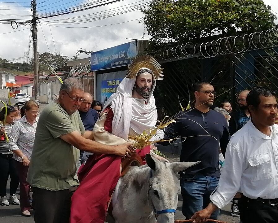 En San José, el recorrido inició en la Catedral Metropolitana y fue encabezado, como es tradicional, por la imagen del Señor del Triunfo sobre el burrito Pepe, que por segundo año asume esta tarea.