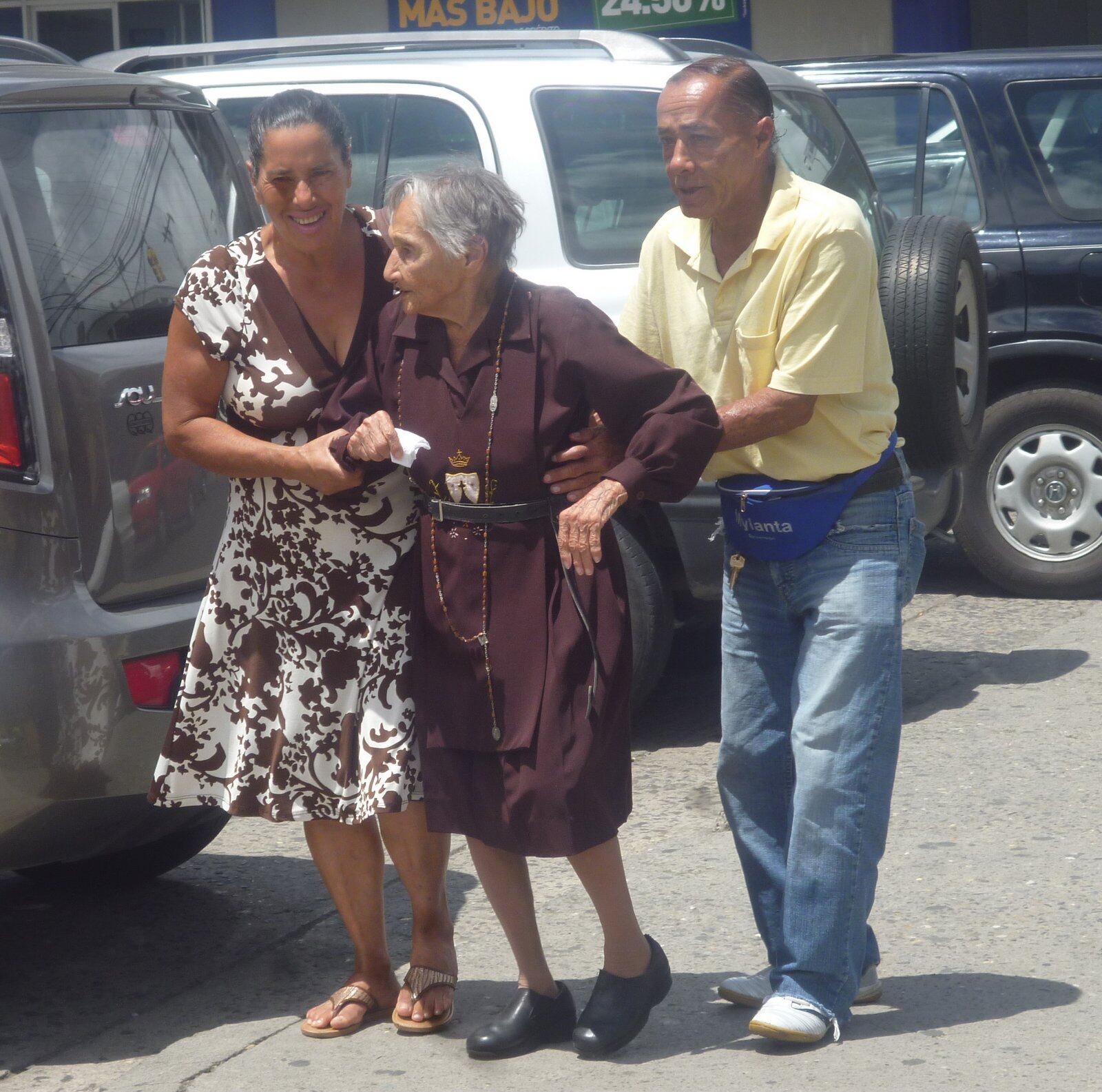 Esta mañana en Cartago, con sus 100 años a cuestas y con el hábito de la Virgen del Carmen llegó a la catedral Emma Cascante, en compañía de sus hijos Xinia y Alexis Guerrero Cascante. Llegaron desde San Rafael de Oreamuno.