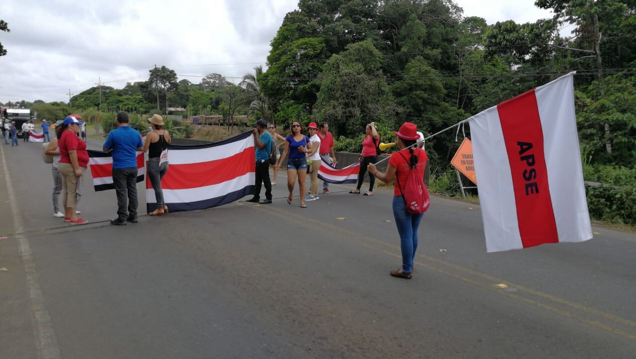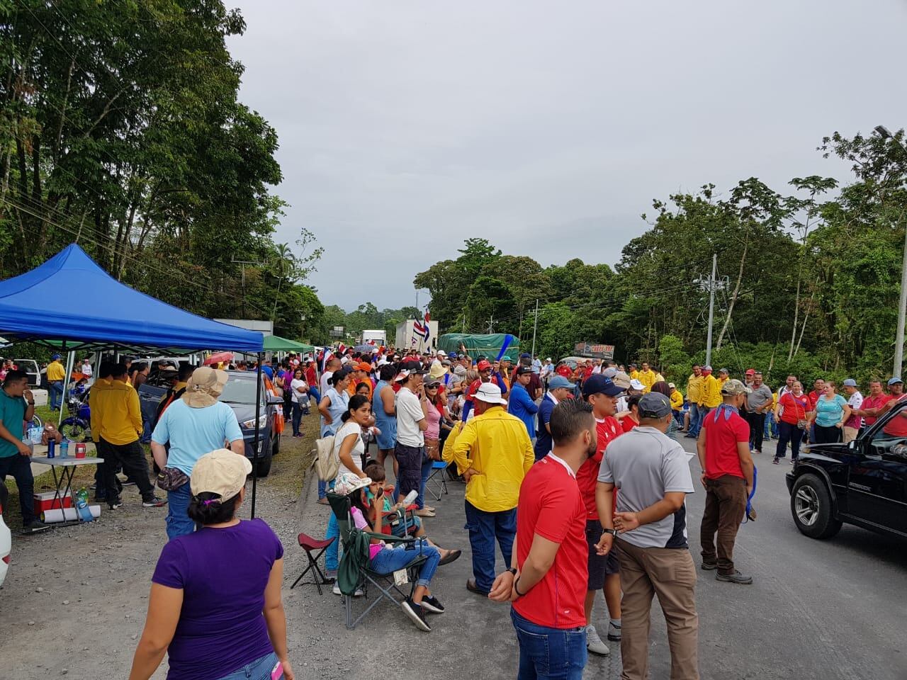 Como se anunció en afiches para otras fechas, los manifestantes se reunieron este jueves e hicieron zumba sobre el puente sobre el río Lagarto, en Río Claro de Golfito. El bloqueo en este punto genera largas presas.