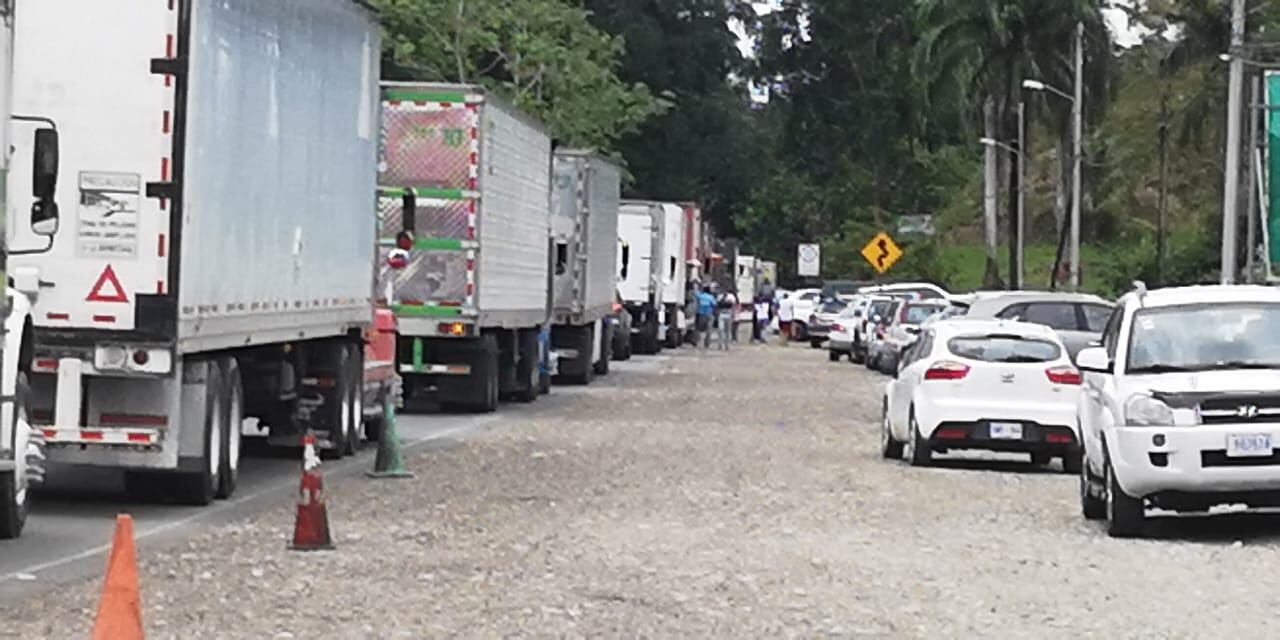 Camiones y vehículos hacían larga fila en la frontera sur ante el cierre en el puente sobre el río Lagarto, en Río Claro de Golfito. Entre tanto, grupos marchaban por Buenos Aires de Puntarenas y el centro de San Carlos.
