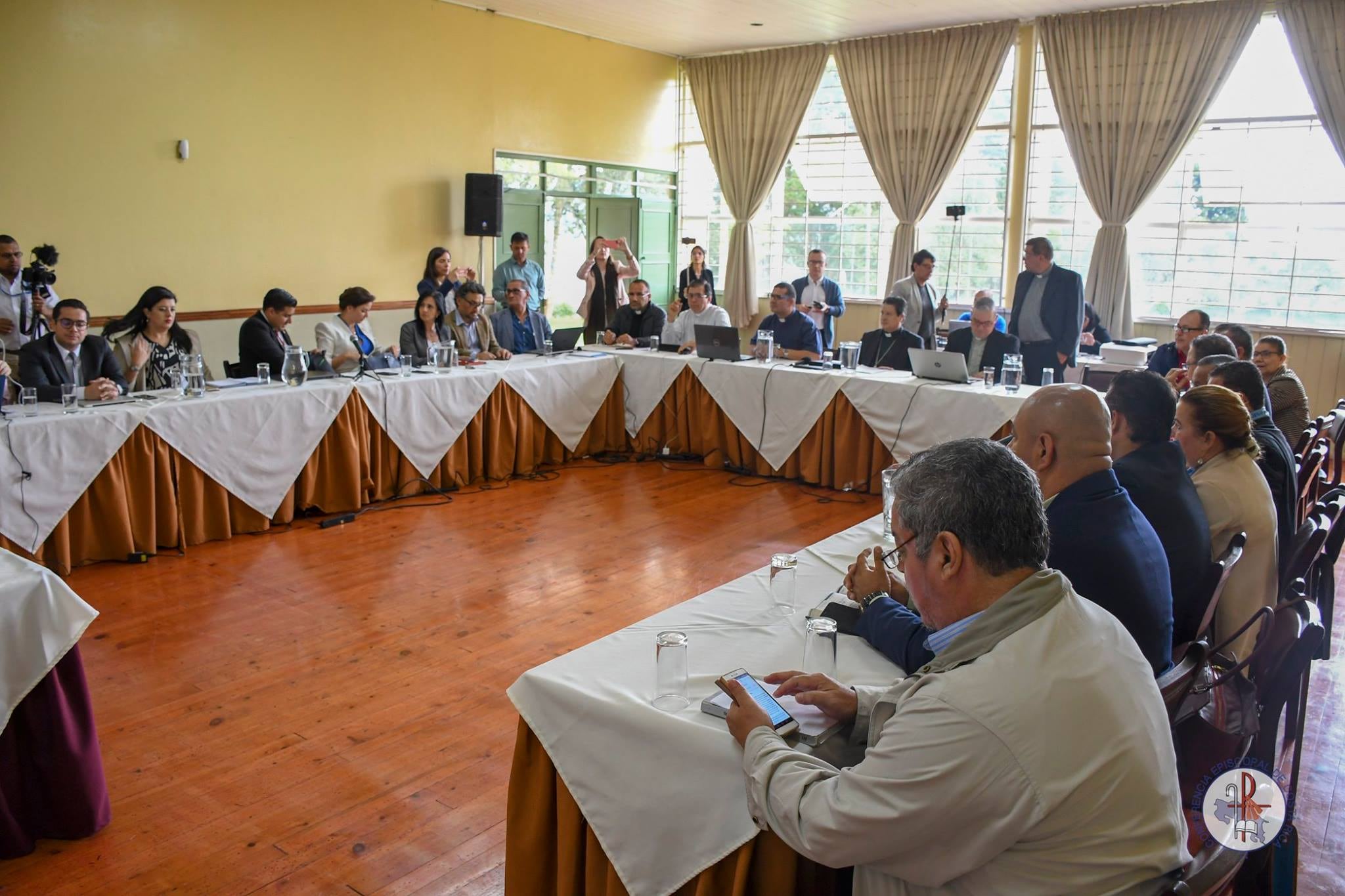 La conversación se realiza en un edificio al que la prensa no tiene acceso. En el lugar hay presencia de la Fuerza Pública, y en horas de la mañana también estaban cruzrojistas y bomberos.