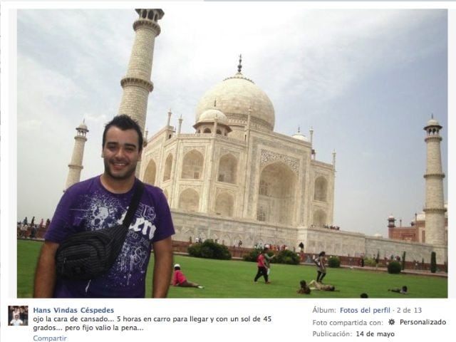 En su perfil en Facebook está colocada una fotografía suya con el Taj Mahal de fondo. En los comentarios, Vindas menciona que estuvo en Nueva Deli y en Hyderabad. Esta ciudad, capital del estado de Andhra Pradesh, es la sede de Seven Pharma.
