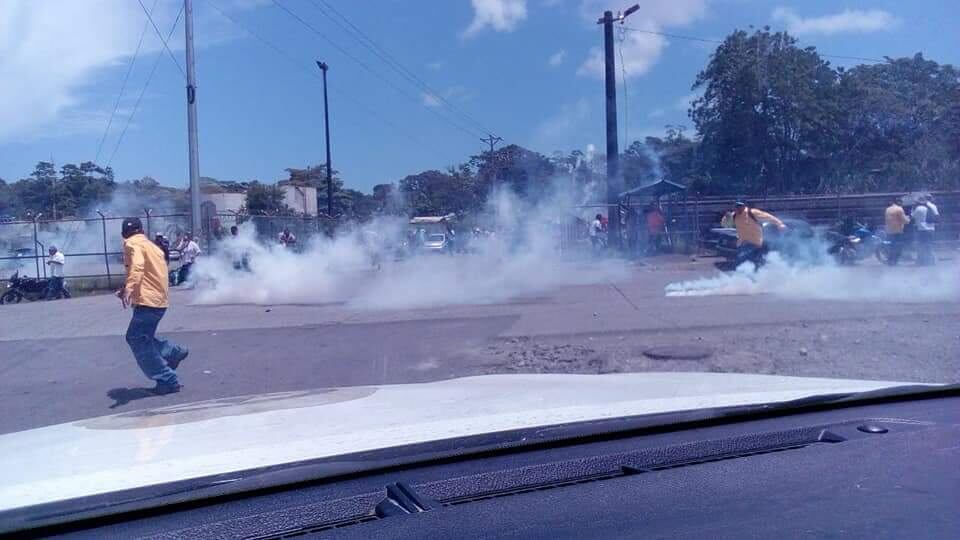 Con gases lacrimógenos, policías antimotines enfrentaron a huelguistas que impedían el paso al muelle de Japdeva, en Moín, principal puerto de entrada y salida de productos del país.