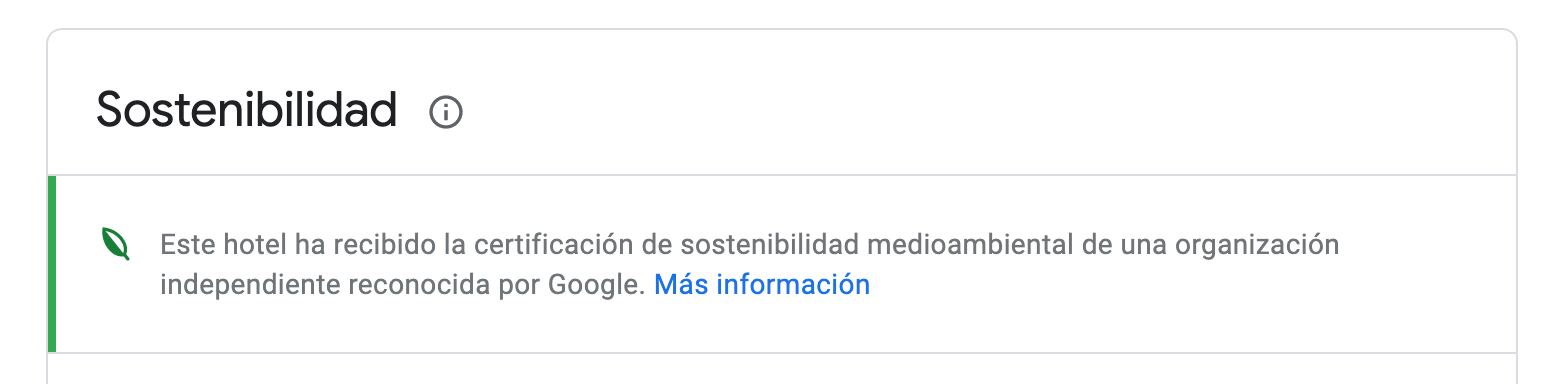 Para ser tomado en cuenta en el registro de Google, los empresarios deben anotar los datos del hotel a través de Google My Business. La idea es que los negocios registren sus esfuerzos en materia de sostenibilidad como la reducción de desechos y materiales de origen sostenible o sus medidas de eficiencia energética y conservación del agua.