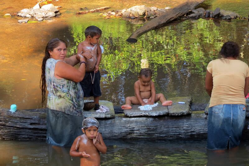 En el mismo pueblo de Isla Chica, la tarde del viernes, Esperanza Gómez y otra mujer adulta bañaban en las sucias aguas del río del mismo nombre a sus hijos más pequeños, al tiempo que lavaban ropa.
