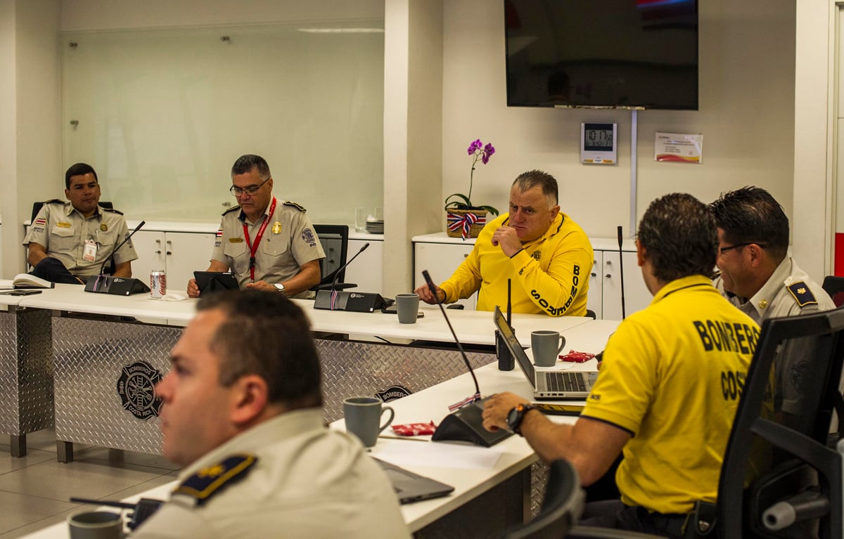 La primera tarea del día, que lo esperaba en la estación de bomberos en Tibás, era una celebración: tras un año de esfuerzos, se pudo entregar la última unidad móvil de apoyo de las 25 que se necesitaban.