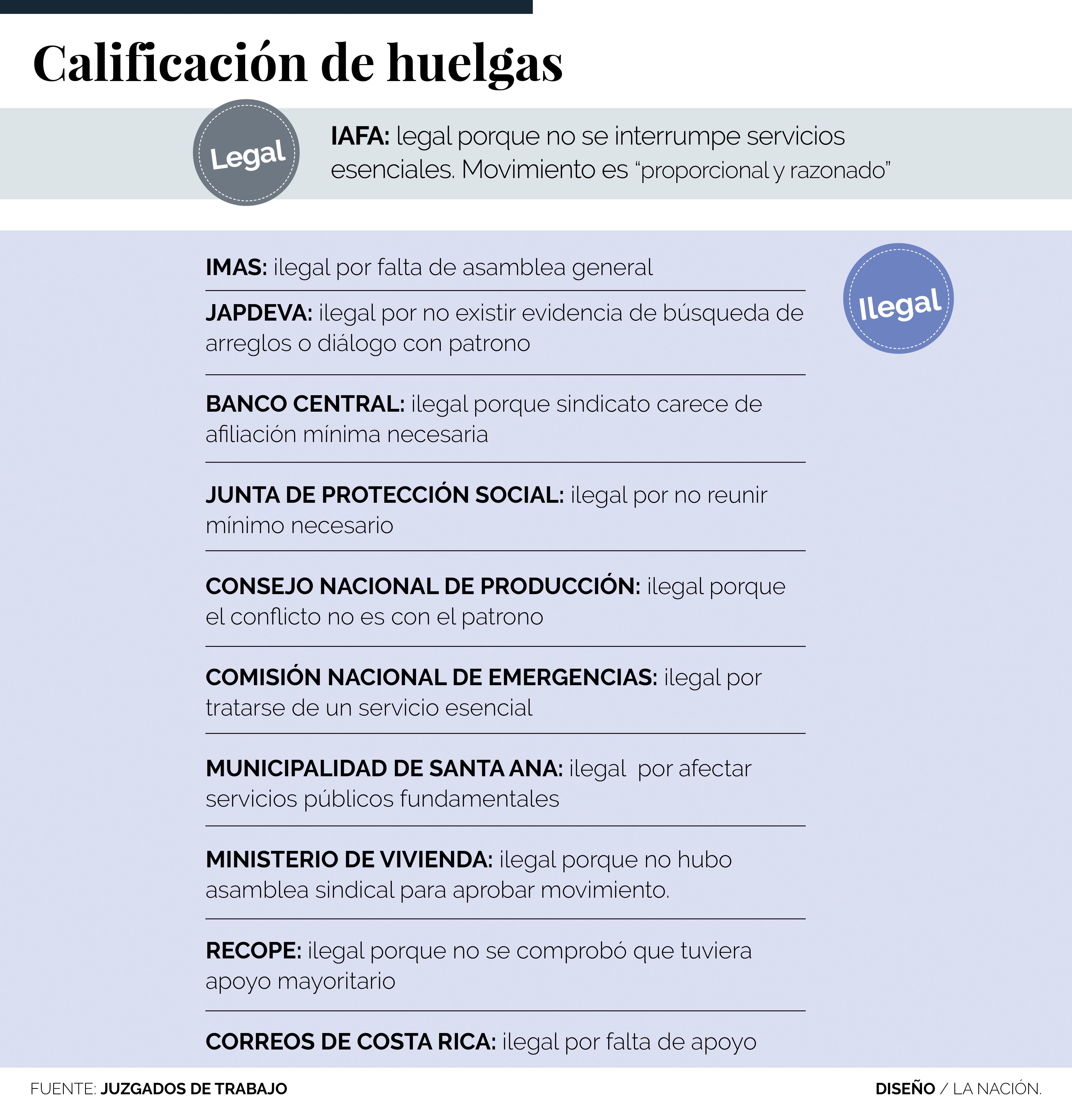 El apoyo a la protesta, señaló el juez, es uno de los requisitos más importantes para efectos de la legalidad de una huelga, al punto de recordar que si esto se incumple, la legislación costarricense señala que se estaría incurriendo en una práctica desleal.