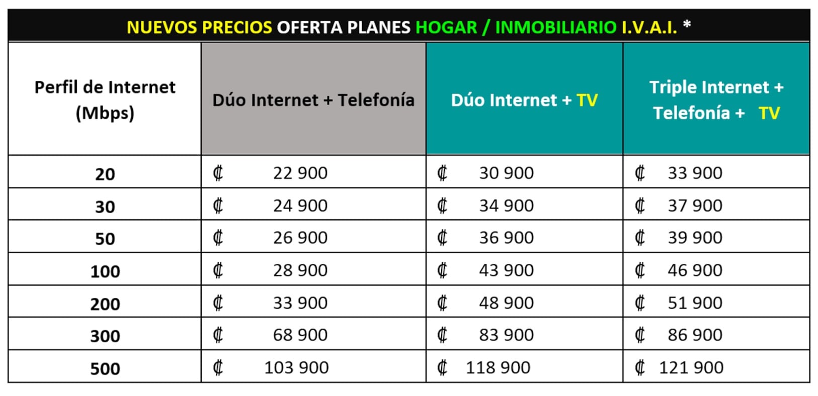 - 50 Mbps a ¢23.900