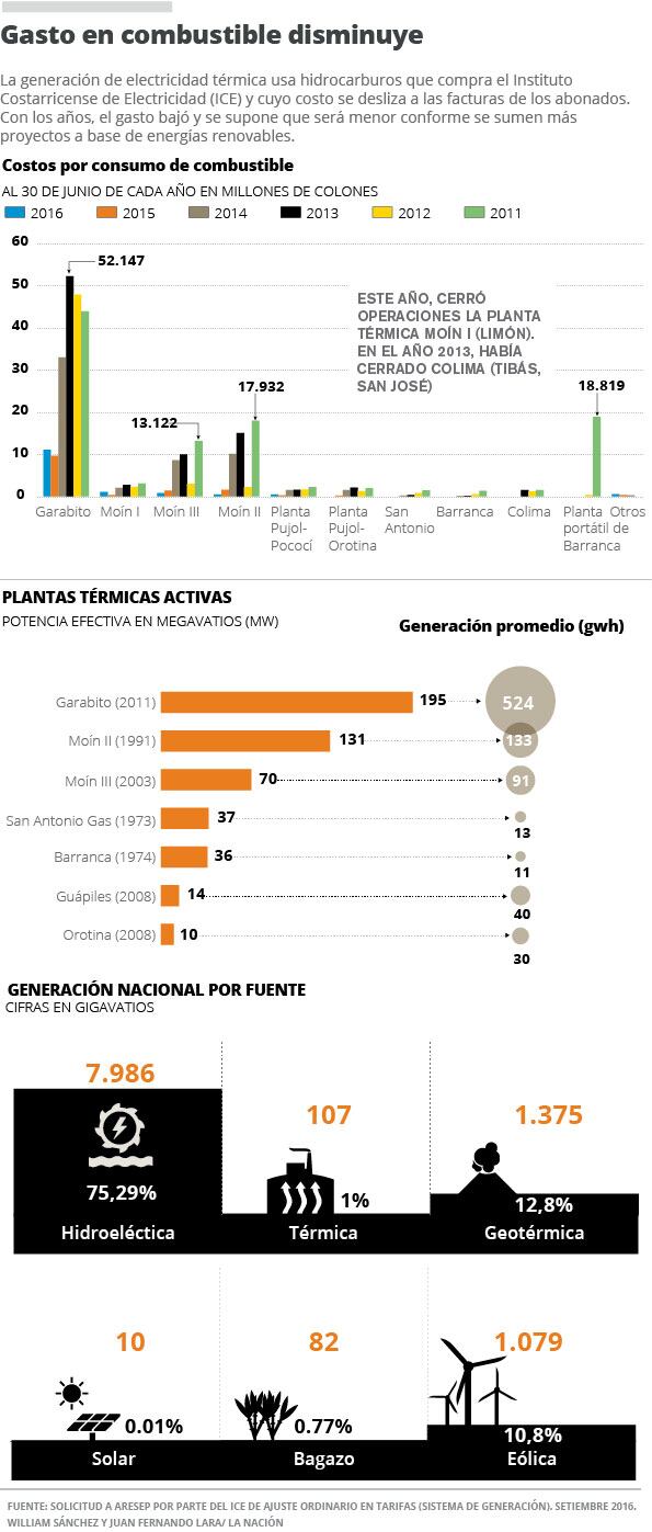 Además, las mismas estarían en pie a siete años de estrenada la hidroeléctrica Reventazón (Siquirres, Limón) con 305 MW de capacidad, cuya existencia, el Instituto siempre justificó como una forma de minimizar la generación térmica.