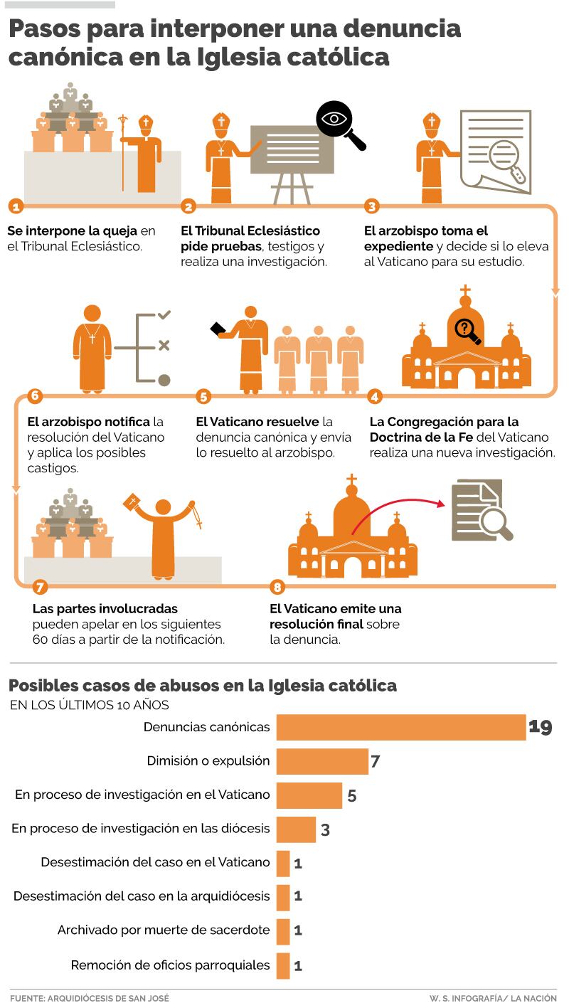 Solo trascendió que en los últimos 10 años han recibido 19 denuncias canónicas por hechos similares a los atribuidos a Mauricio Víquez, sacerdote expulsado con aval del Vaticano, y a Manuel Guevara, cura removido de la parroquia de Santo Domingo de Heredia como una medida cautelar.