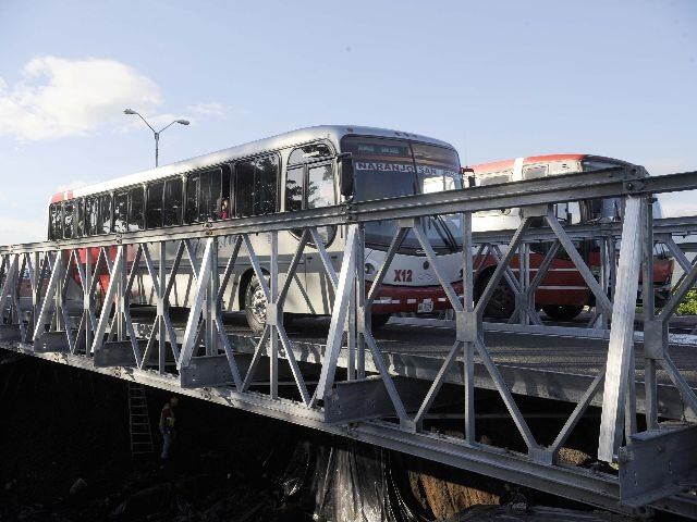 Los ingenieros del Conavi vigilan de cerca la zona ante el riesgo de que el paso de vehículos por los puentes bailey –habilitados desde ayer– provoquen nuevos desprendimientos y aumente la dimensión de la cavidad.