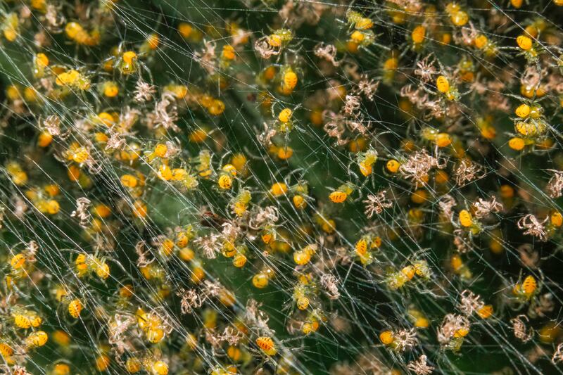 Si dirigiese la vista al suelo, es posible toparse con las laboriosas hormigas zompopas. Si buscara con la mirada a las alturas, en algunos rincones de los árboles lo espera el asombro escalofriante y cautivador de centenares de pequeñas arañas hilo de oro.