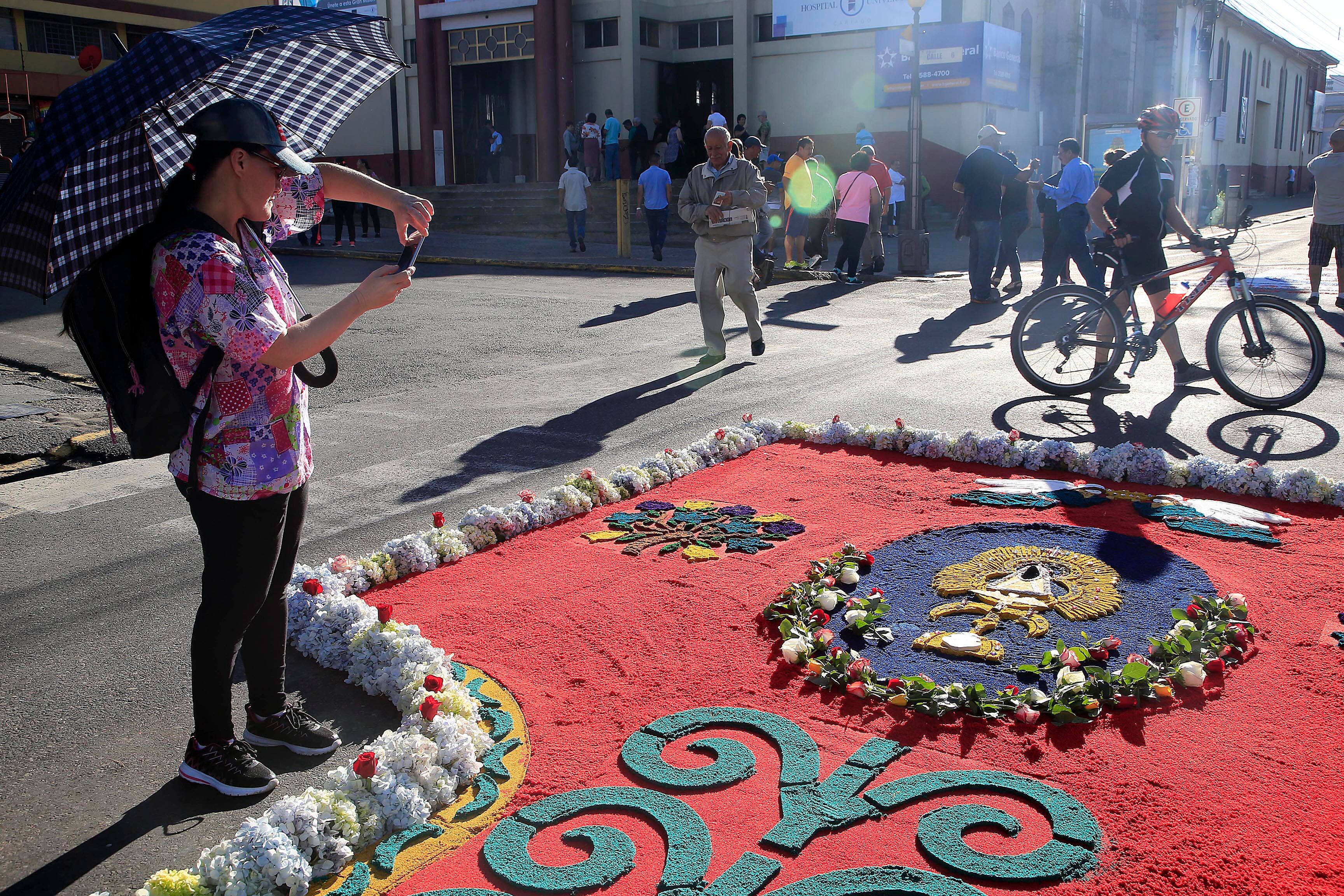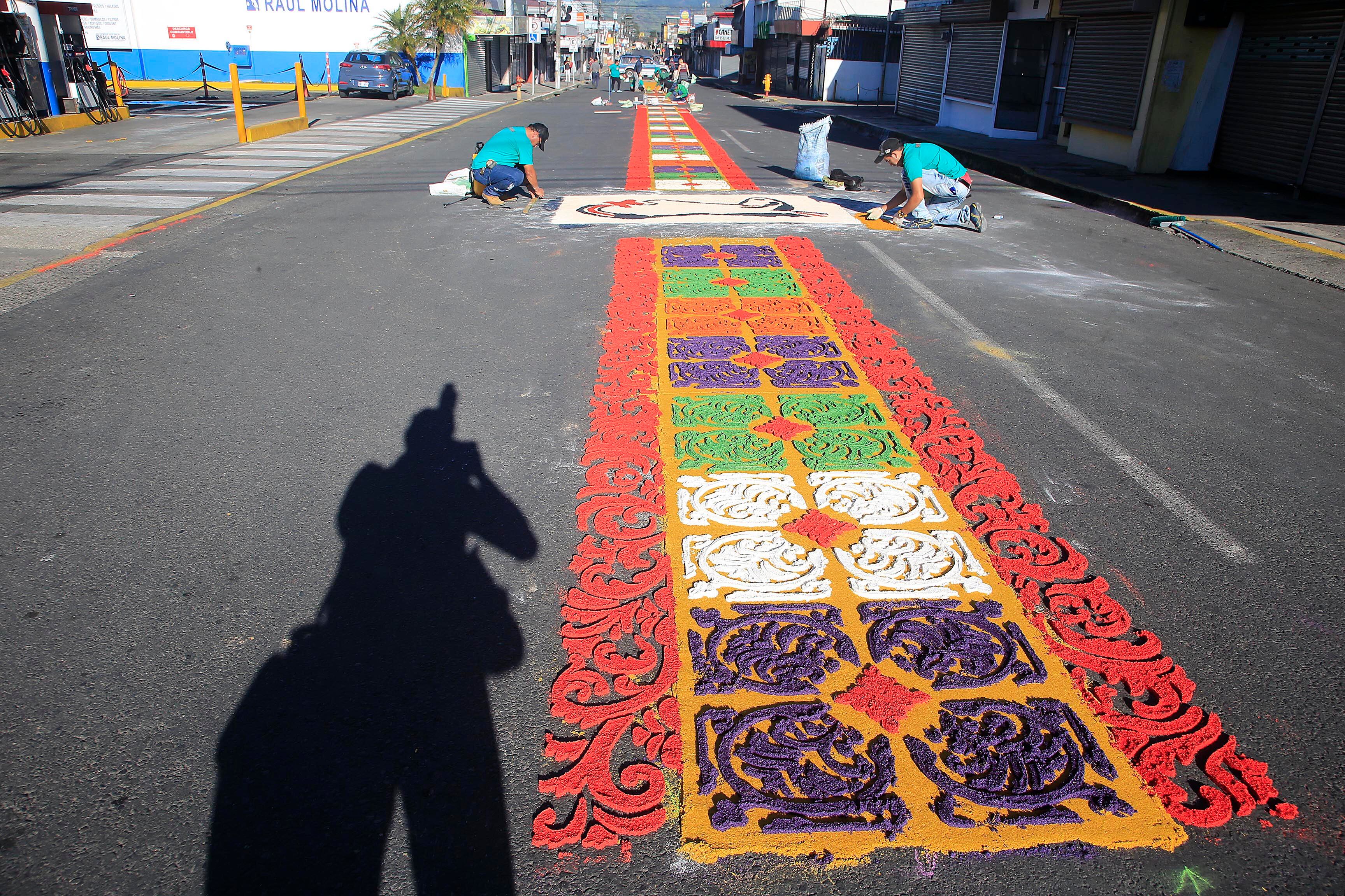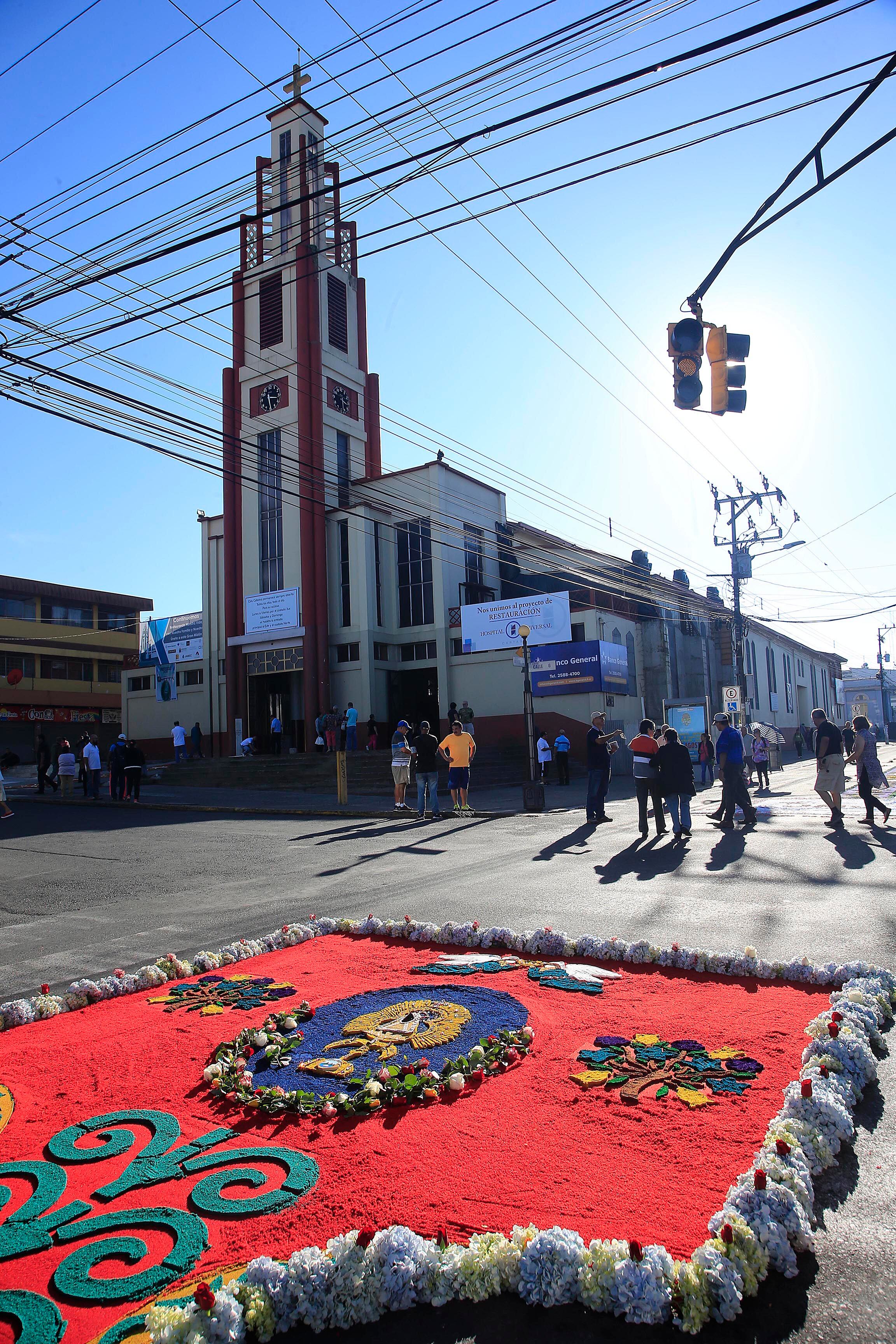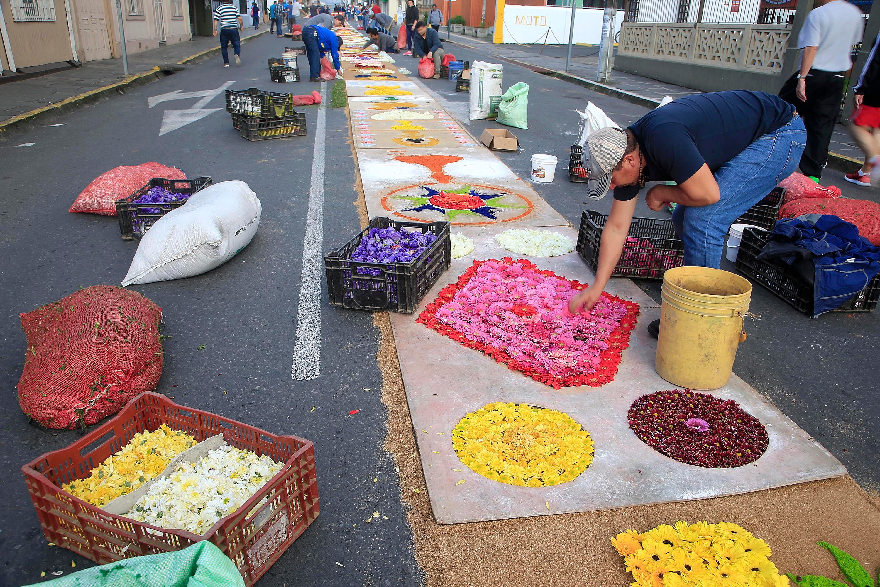 Diecinueve parroquias de la provincia participan en la confección de este arte efímero que se extiende a lo largo de casi dos kilómetros entre la catedral de Santiago Apóstol (conocida como la iglesia de El Carmen) y la casa de La Negrita, patrona de Costa Rica.