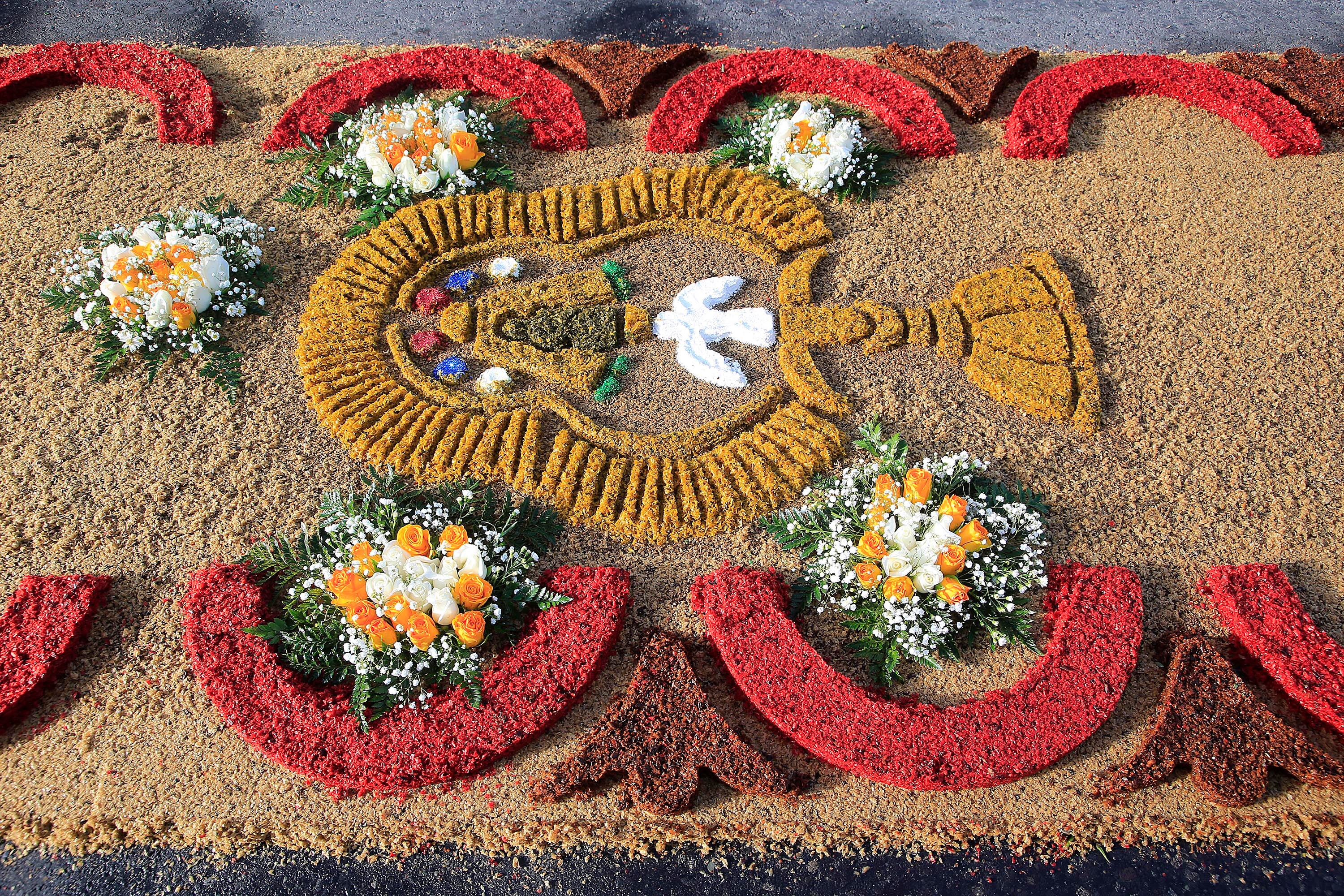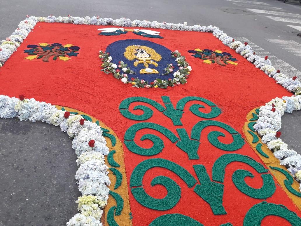 “Esta comisión siempre está organizada durante el año porque siempre están activos y participaron 50 personas. Básicamente lo que se utilizó fue el aserrín, flores y virgencitas hechas de material reciclado y tintes que son un poco costosos porque son traídos de Guatemala", explicó el religioso.