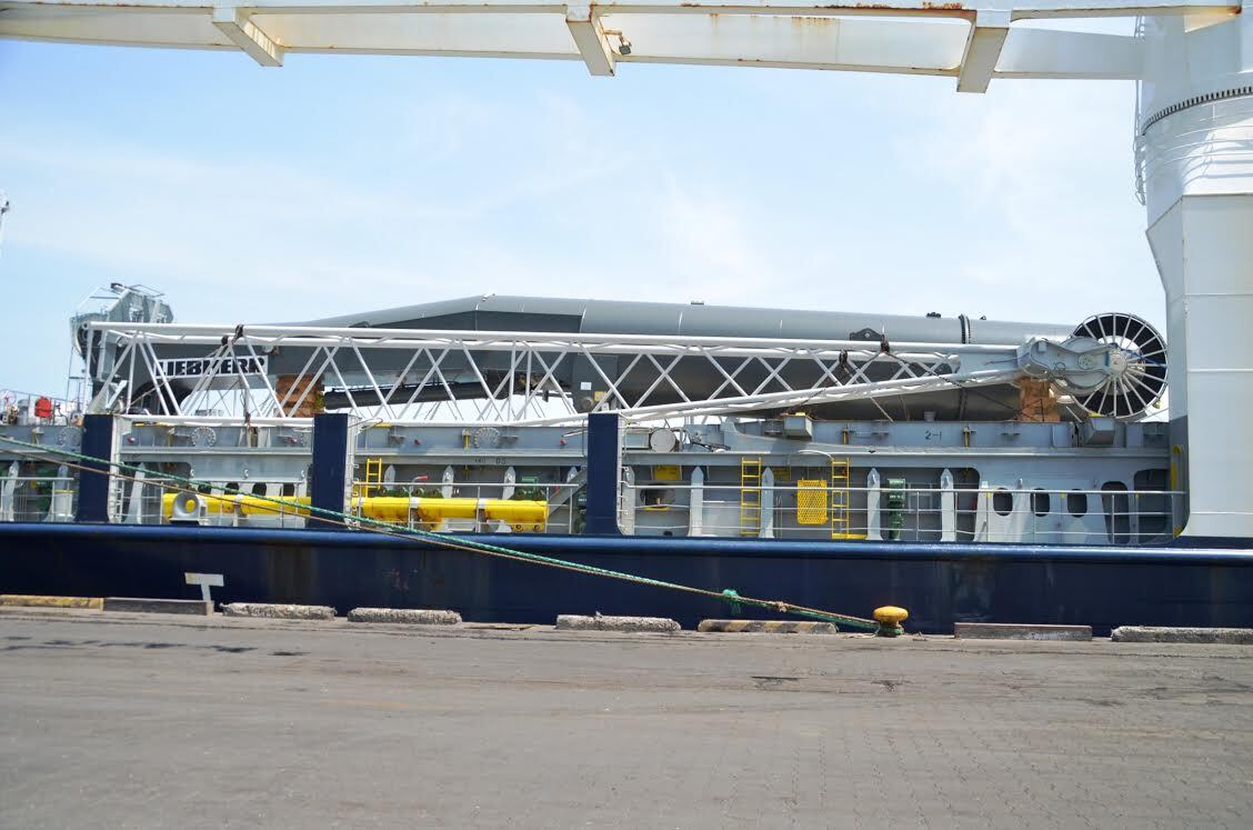 El nuevo equipo LIEBHERR LHM 550, fabricado en Alemania, triplicará la capacidad de descarga de las grúas activas en Caldera. Actualmente es común ver anclados tres o cuatro barcos mercantes por más de tres días en la bahía de Caldera, ya que cada uno espera su turno para arribar al muelle y realizar la carga o la descarga.