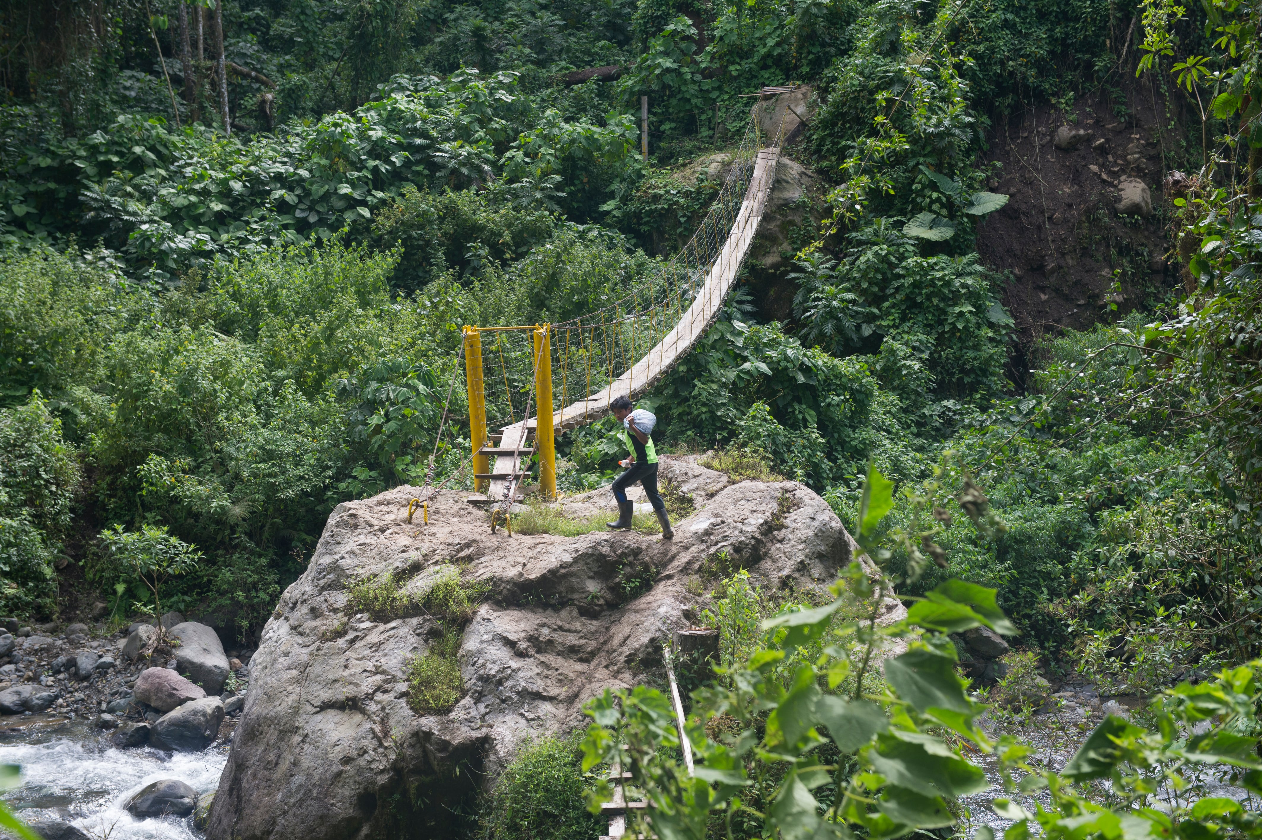 Después de nueve horas de caminata llegamos a Sitio Gilda. Primero al poblado de Jakjuä, que territorialmente pertenece a Limón y después de cruzar en andarivel el río Chirripó, de aproximadamente 80 metros de largo, llegamos a Jamó, cuya división política la sitúa en la provincia de Cartago.