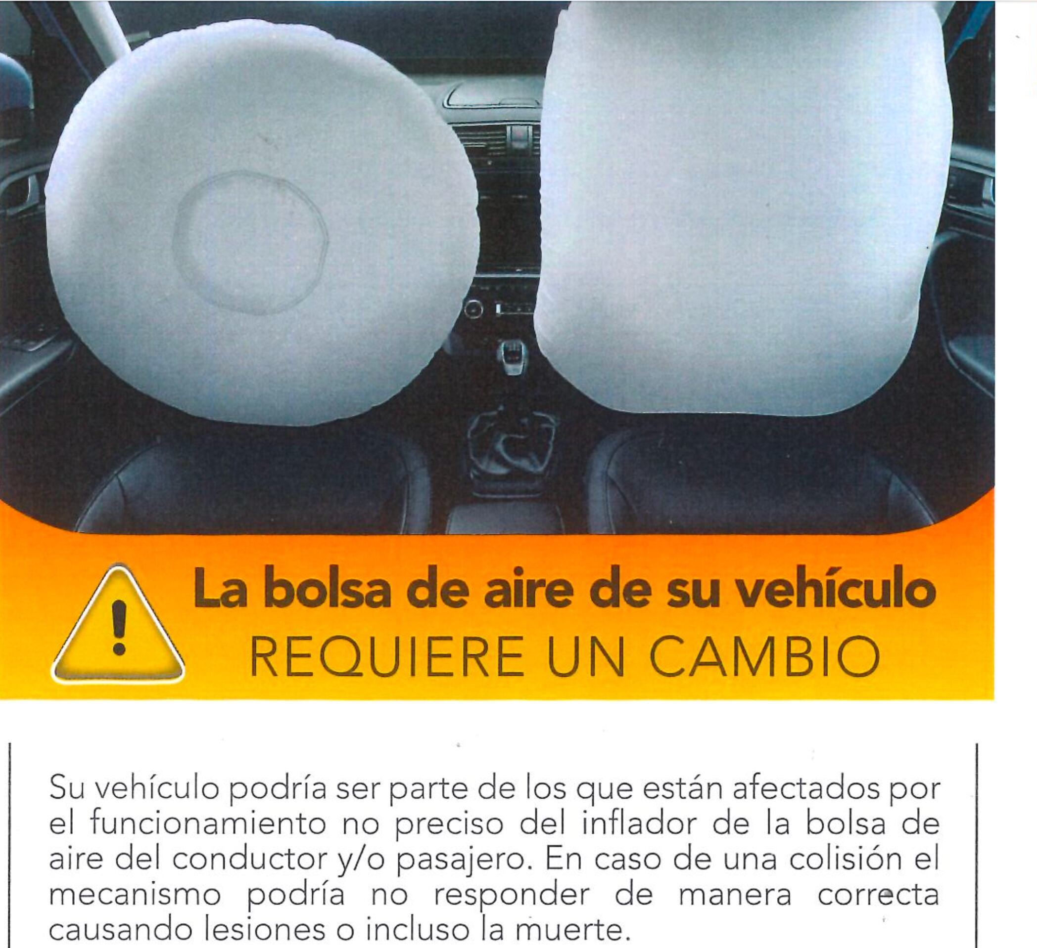 Decenas de miles de vehículos en Costa Rica circulan con bolsas de aire peligrosas por lo cual requieren un arreglo preventivo en dicho dispositivo de seguridad que, de activarse en una colisión, podría causar lesiones graves o incluso la muerte a los pasajeros.