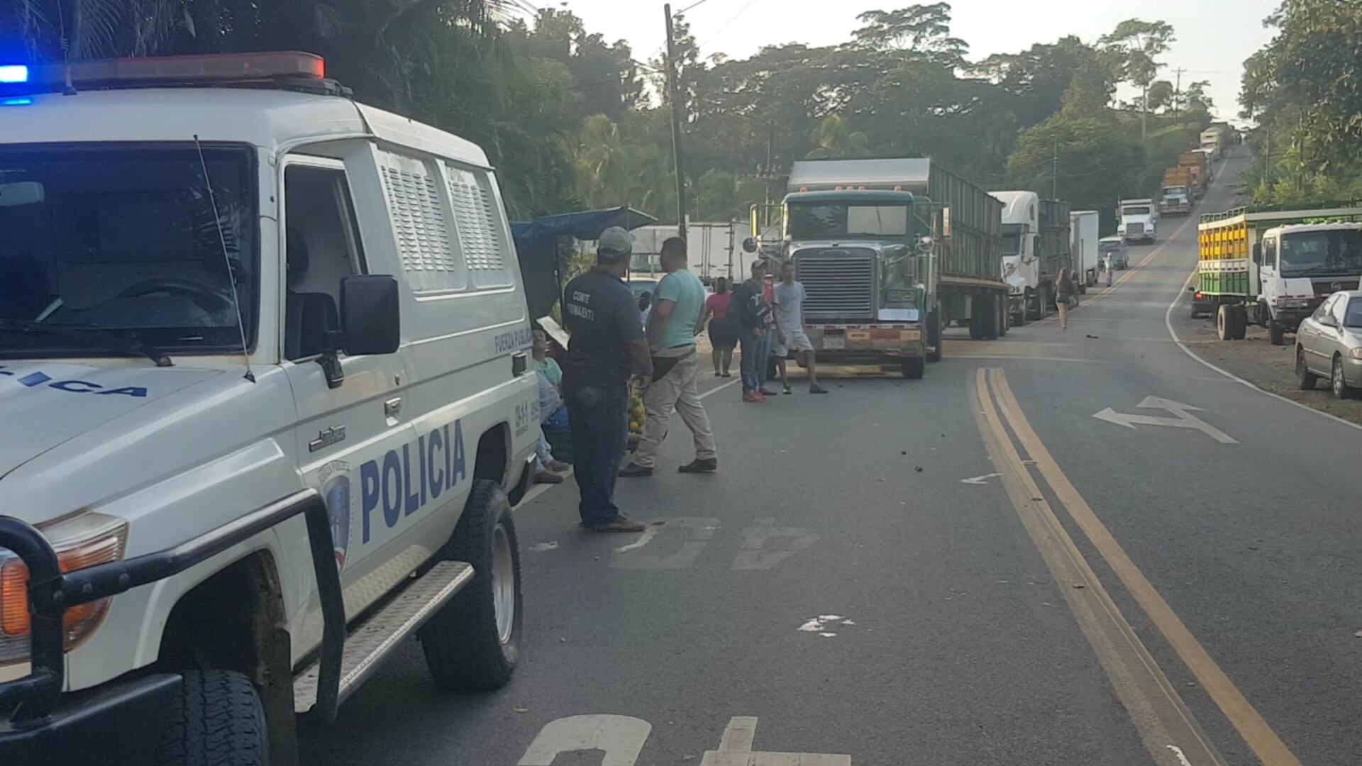 10:02 a. m. Huelguistas impiden paso por vía a Limón