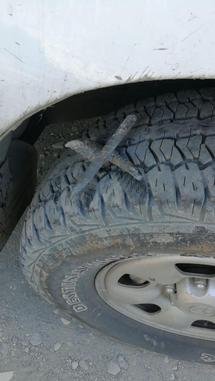 11:34 a. m. Seguridad denuncia uso de clavos para dañar llantas de quien quiera cruzar un bloqueo