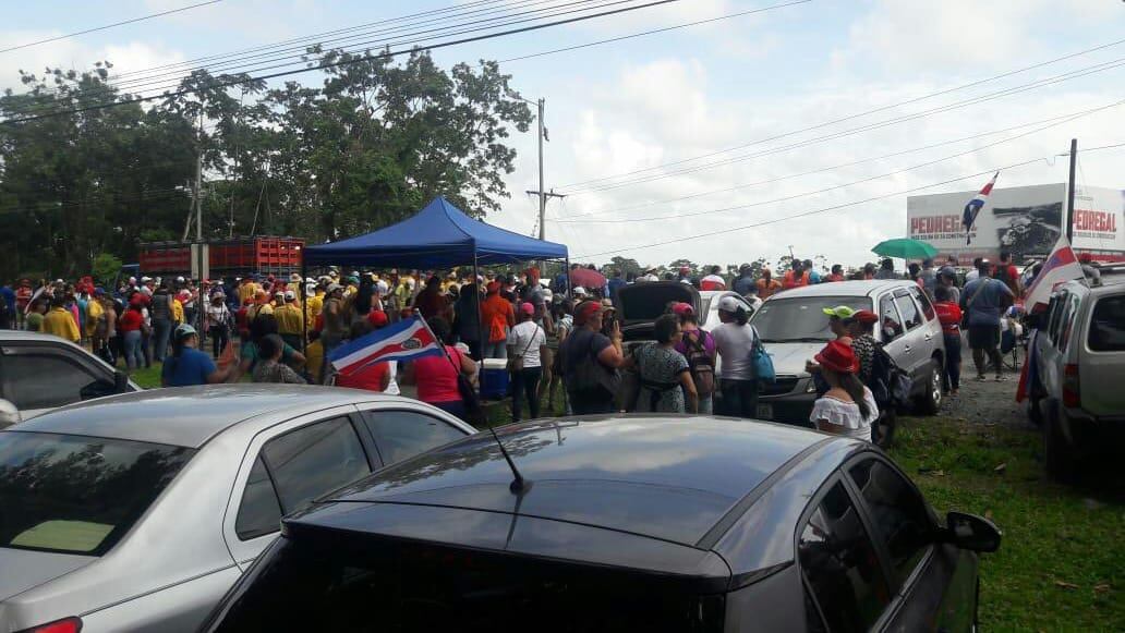 En el sector del río Danta, en Pococí, más de 100 personas obstruyen la vía con vehículos y toldos. Entre ellos hay maestros y personal del ICE. Generan presas de hasta 5 kilómetros.