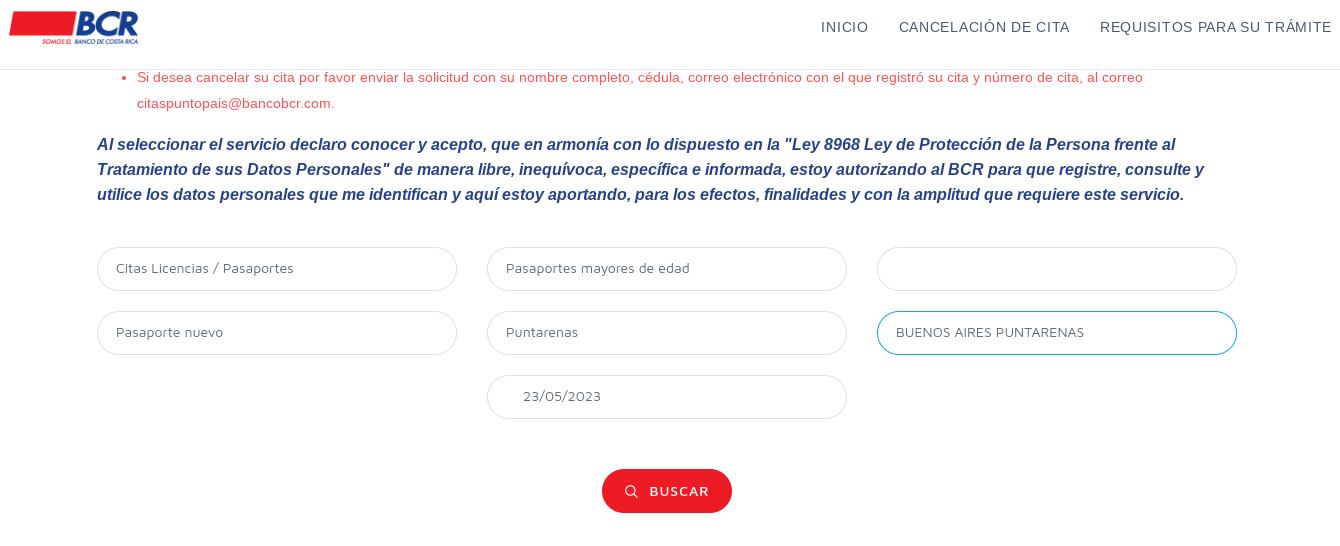 Mientras, en la página en línea del Banco de Costa Rica, al 16 de marzo, existían citas solo en las provincias de Puntarenas (Buenos Aires, Ciudad Neilly, Paso Canoas y San Vito) y de Limón (Batán, Cahuita y Limón). En todas estas sedes había campo a partir del mes de mayo, según confirmó La Nación.
